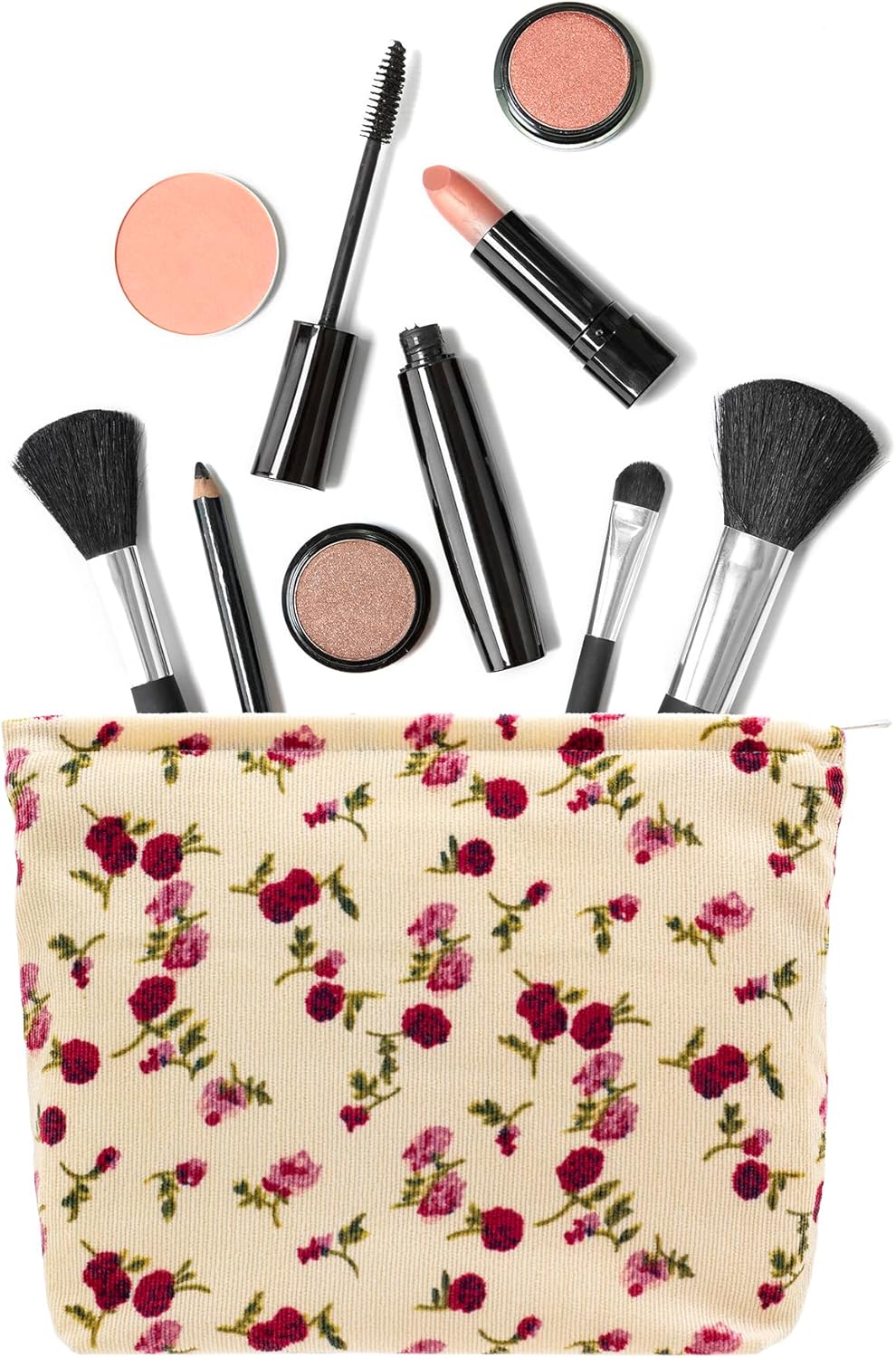 PAZIMIIK Makeup Bag Large Zipper Corduroy Make Up Pouch for Purse Travel Canvas Cosmetic Organizer for Women Brush Storage,Vintage Rose Beige