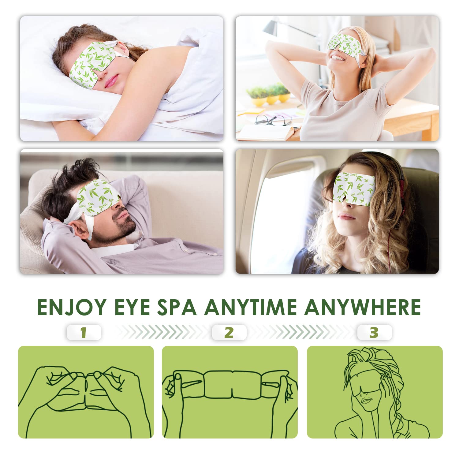 - ćEnjoy Eye SPA Anytime, Anywhereć: Our steam heating eye mask is not only lightweight in design, but each piece is individually packaged for easy use and portability. This means you can enjoy a relaxing spa experience anytime, anywhere. Whether at home or out, during the day or night, during sleep time, lunch break, or long distance travel, our steam eye mask can bring you a pleasant eye SPA care experience and is suitable for all walks of life, family, students, business people, etc