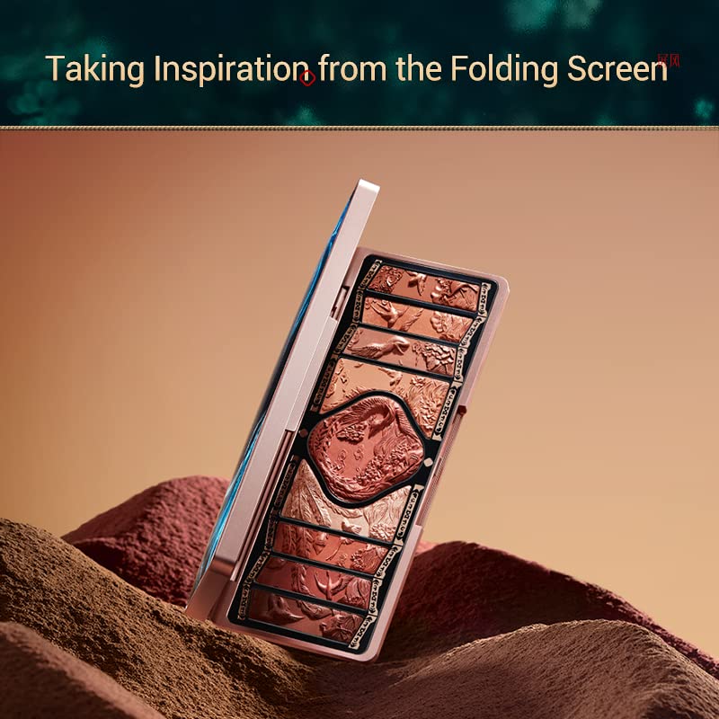 - Chinese Aesthetics: Taking inspiration from the folding screen, deeply rooted in Chinese art and culture, we engraved delicate patterns taken from the myth "All Birds Paying Homage to the Phoenix" on a miniature folding screen that forms the eyeshadow palette in a beautiful three-dimensional work of art.