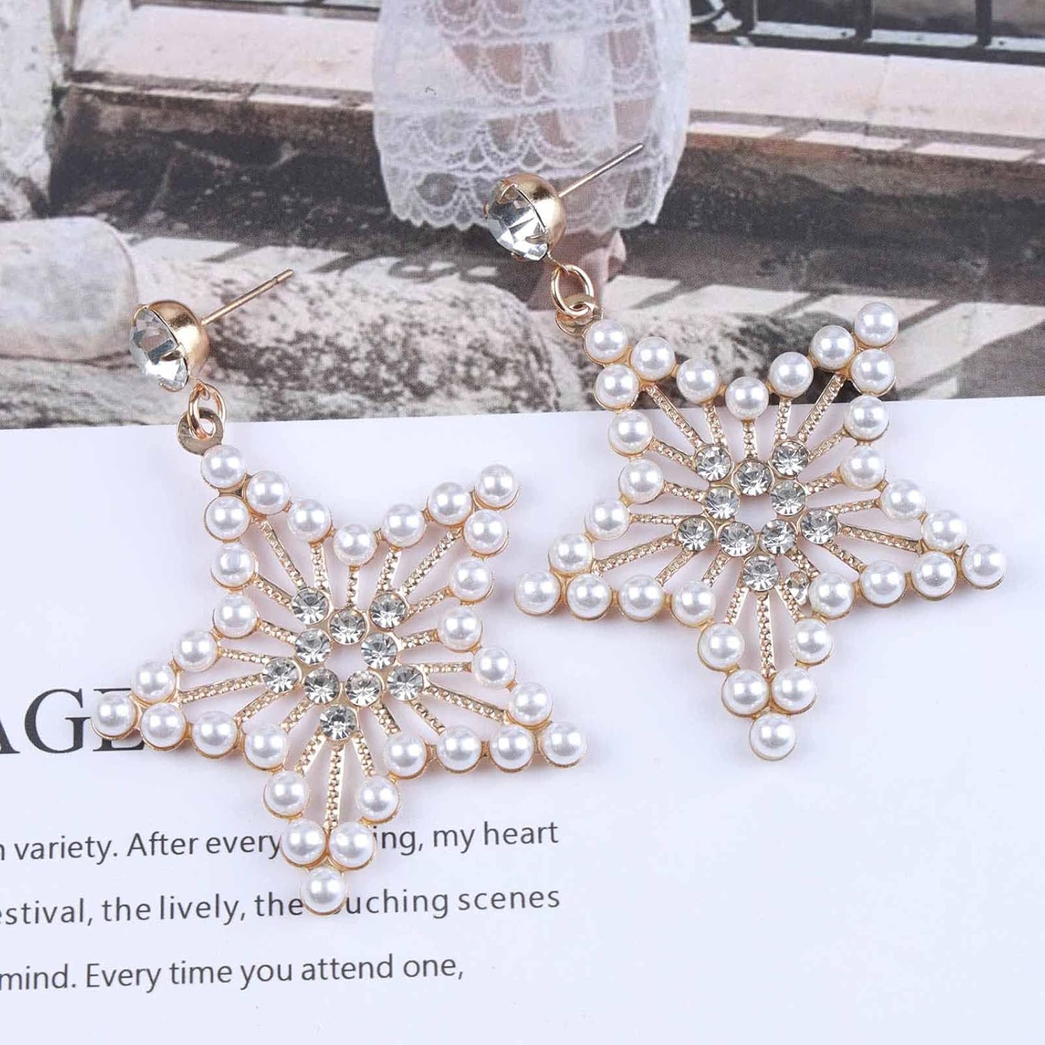 - Rhinestone Star Statement Earrings are made of superior alloy,crystal and artificial pearl,sturdy and durable,nice plating makes them bright and not easy to fade.