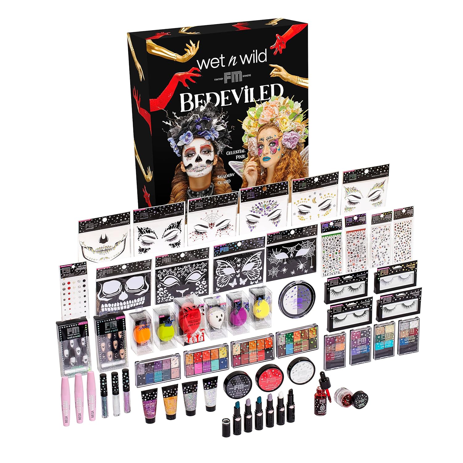 wet n wild Fantasy Makers Bedeviled Halloween PR Box - Makeup Set with Versatile Brushes, Unique Sponges,Vibrant Buildable & Blendable Palettes, & Lip Glosses for Unique Looks, Cruelty-Free & Vegan