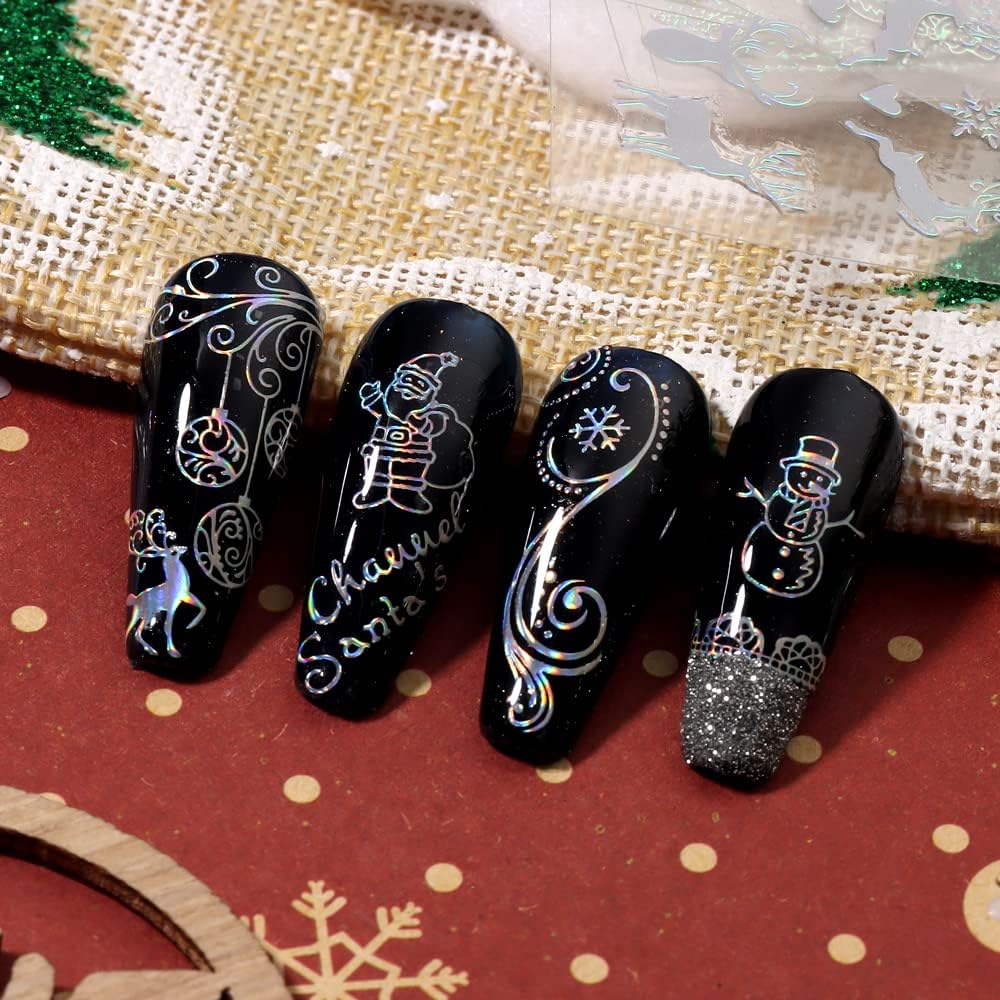 9 Sheets Aurora Christmas Nail Art Stickers Decals Self-Adhesive Pegatinas Uñas Glitter Rose Gold Snowflakes Winter Nail Supplies Nail Art Design Decoration Accessories