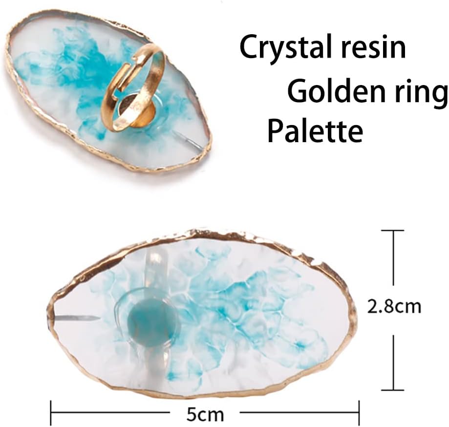 • Package includes: there are 3 pieces resin nail art palettes in the package, 1piece big resin palette with golden edge,2 pieces finger ring nail holder(blue&pink)