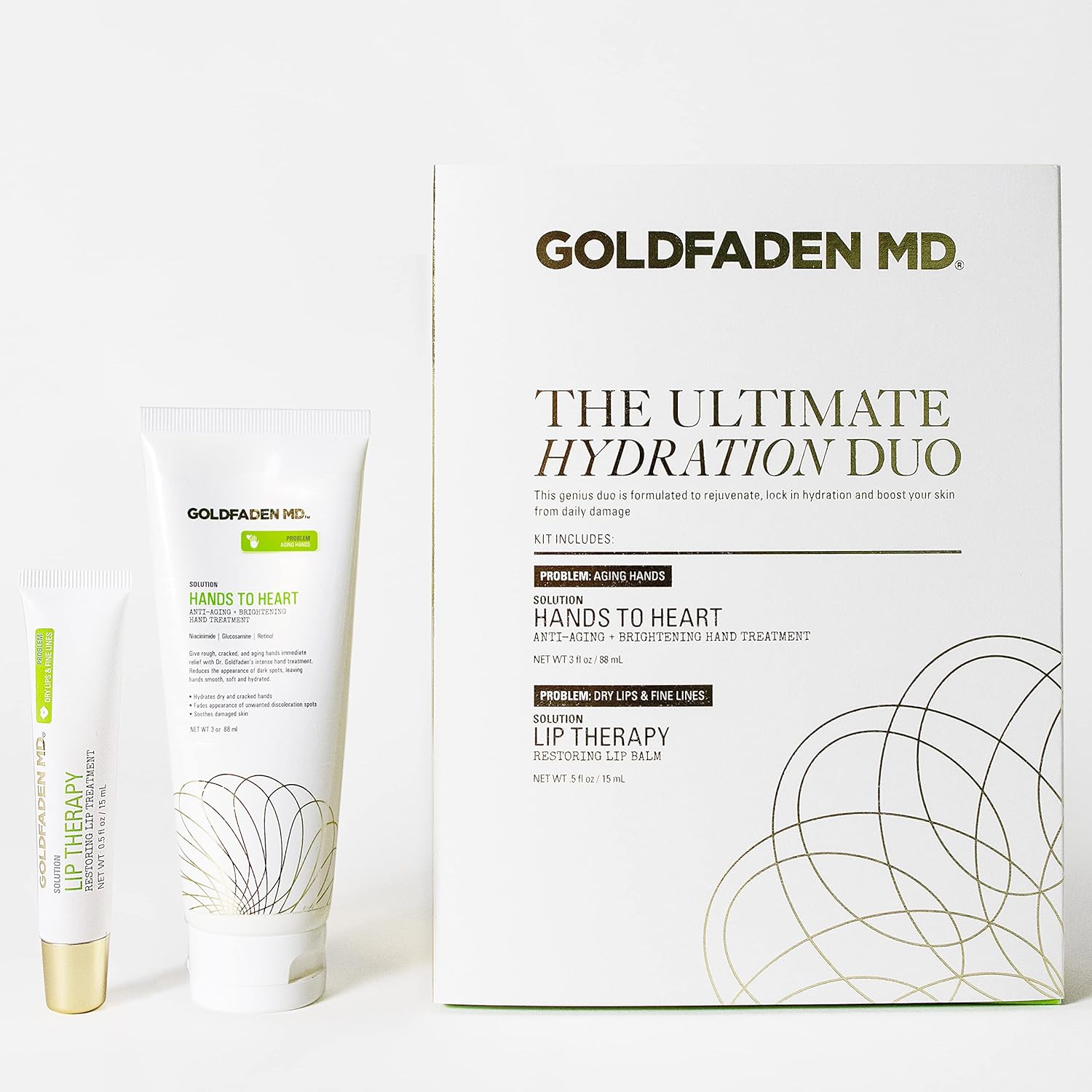 GOLDFADEN MD Ultimate Hydration Duo Hands to Heart Moisturizing Anti-Aging Hand Cream 3oz and Lip Therapy Restoring Lip Balm .5oz