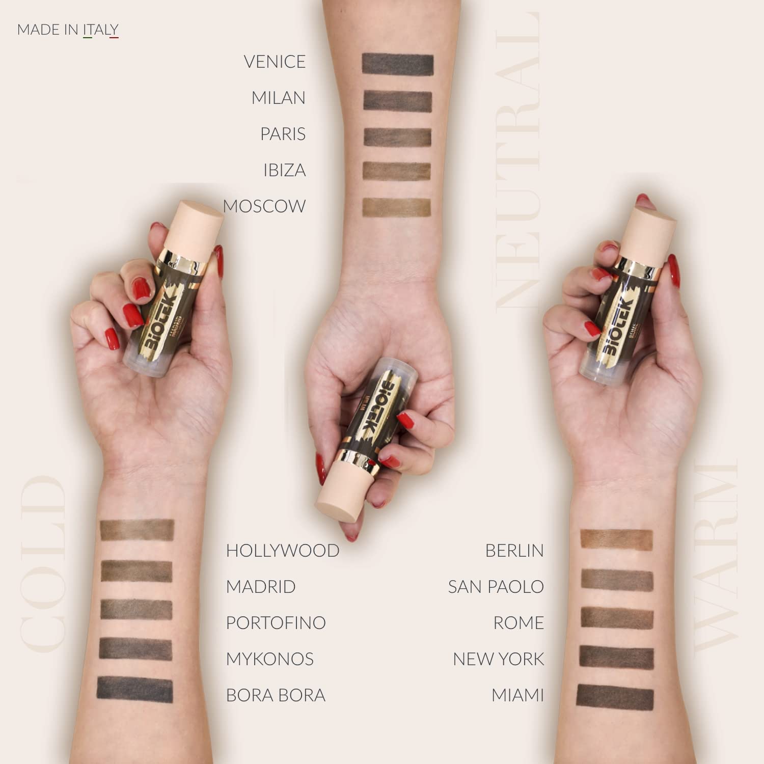 - MILAN has a neutral tendency which makes it ideal for working on all neutral skins with dark brown eyebrows. Do not use it on warm or cold skin undertones. VENICE has a neutral tendency which makes it ideal for working on all neutral skins (i.e. not tending to red or green) with very dark eyebrows.
