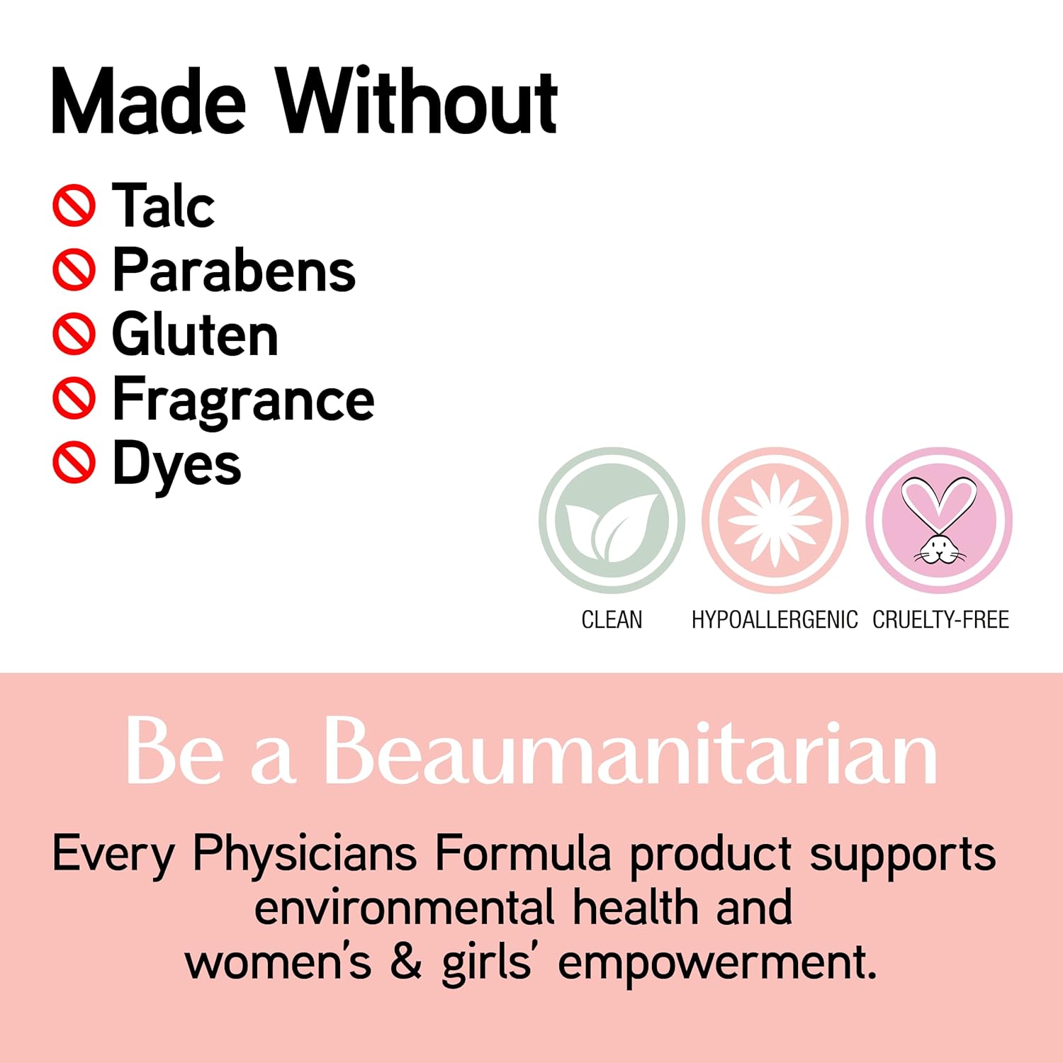 - Cruelty-Free: All Physicians Formula foundations, eye makeup, lipsticks, and other cosmetics are always cruelty-free and never tested on animals.