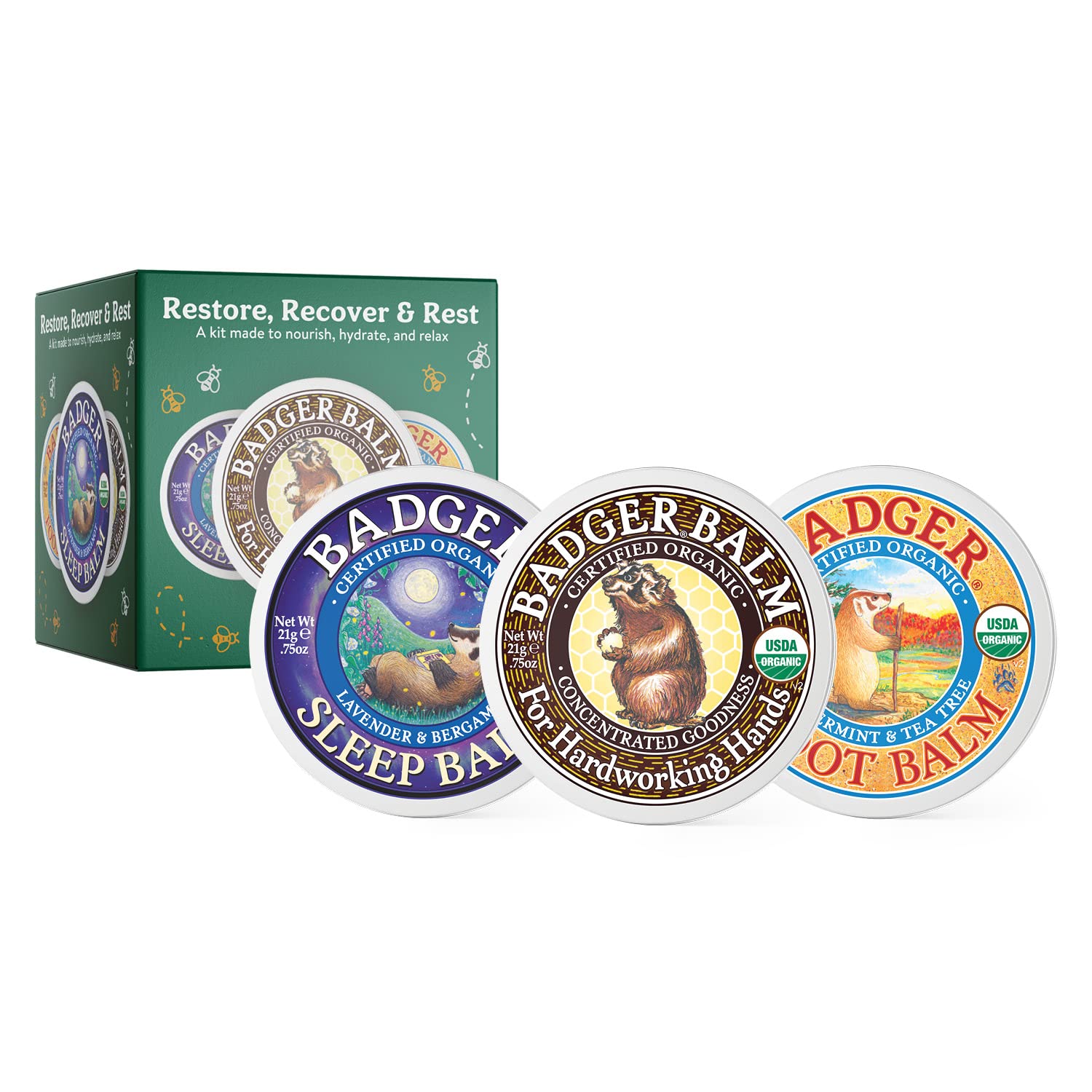 - One classic Badger balm is terrific. Three make for a great gift! Feel good from head to toe with the new Badger Balm Mini Sampler, a beautifully packaged collection of Badger's three most popular balms. It includes one .75 oz tin of Badger Balm, Foot Balm and Sleep Balm.