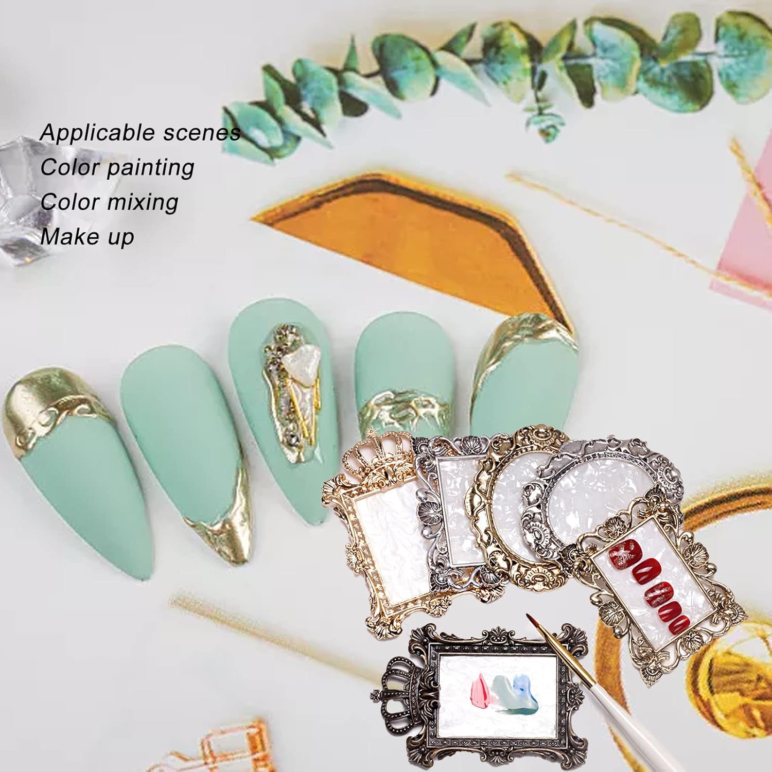 2pcs Resin Nail Art Palette, Nail Art Painting Palette Gold Silver Copper Mixed Color Vintage Photography Props Nail Gel Color Makeup Display Board Nail Art Cosmetic Mixing Tools