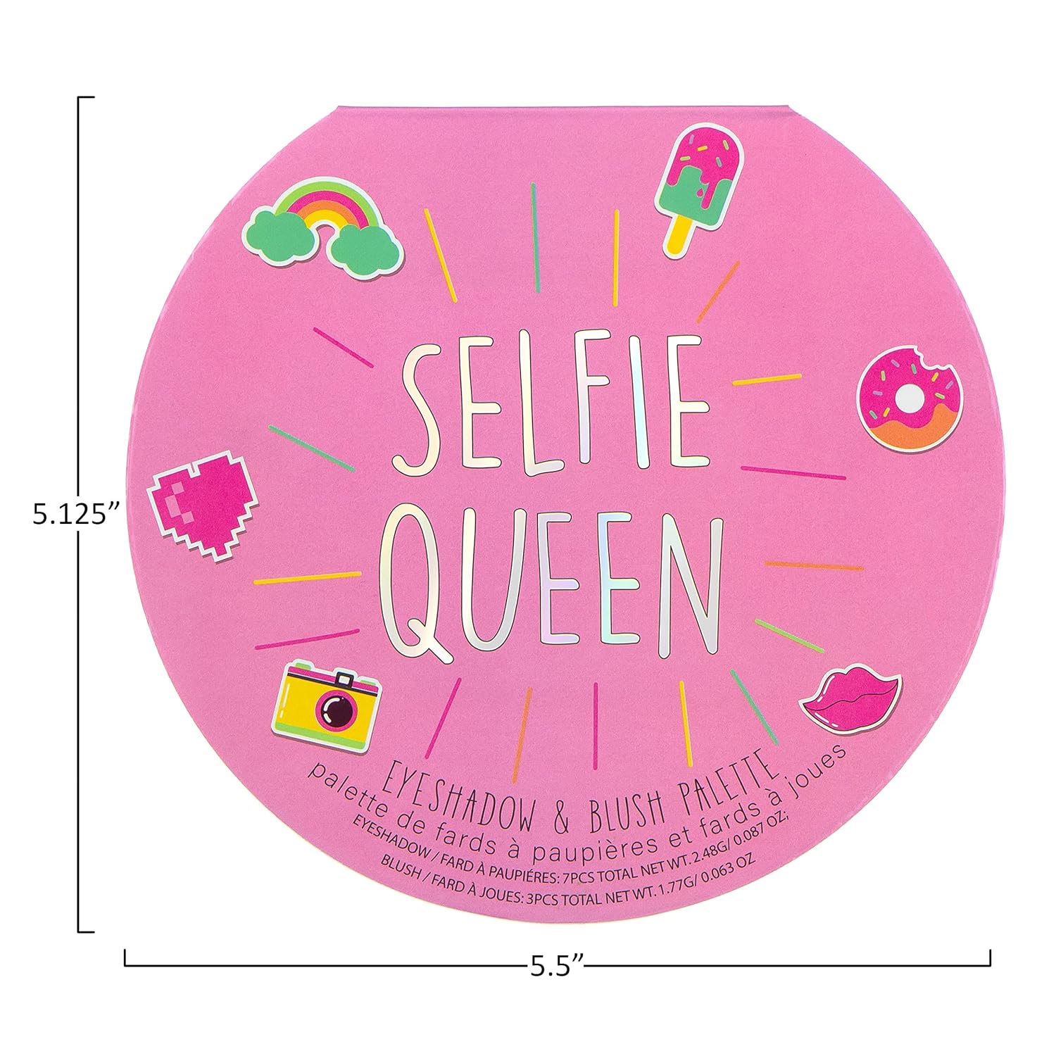 - Makeup Mirror - The makeup palette includes a small mirror inside the compact so you can do your makeup wherever you are; The SELFIE QUEEN glitter eyeshadow is decorated with girly icons and features a butterfly-shaped beauty mirror