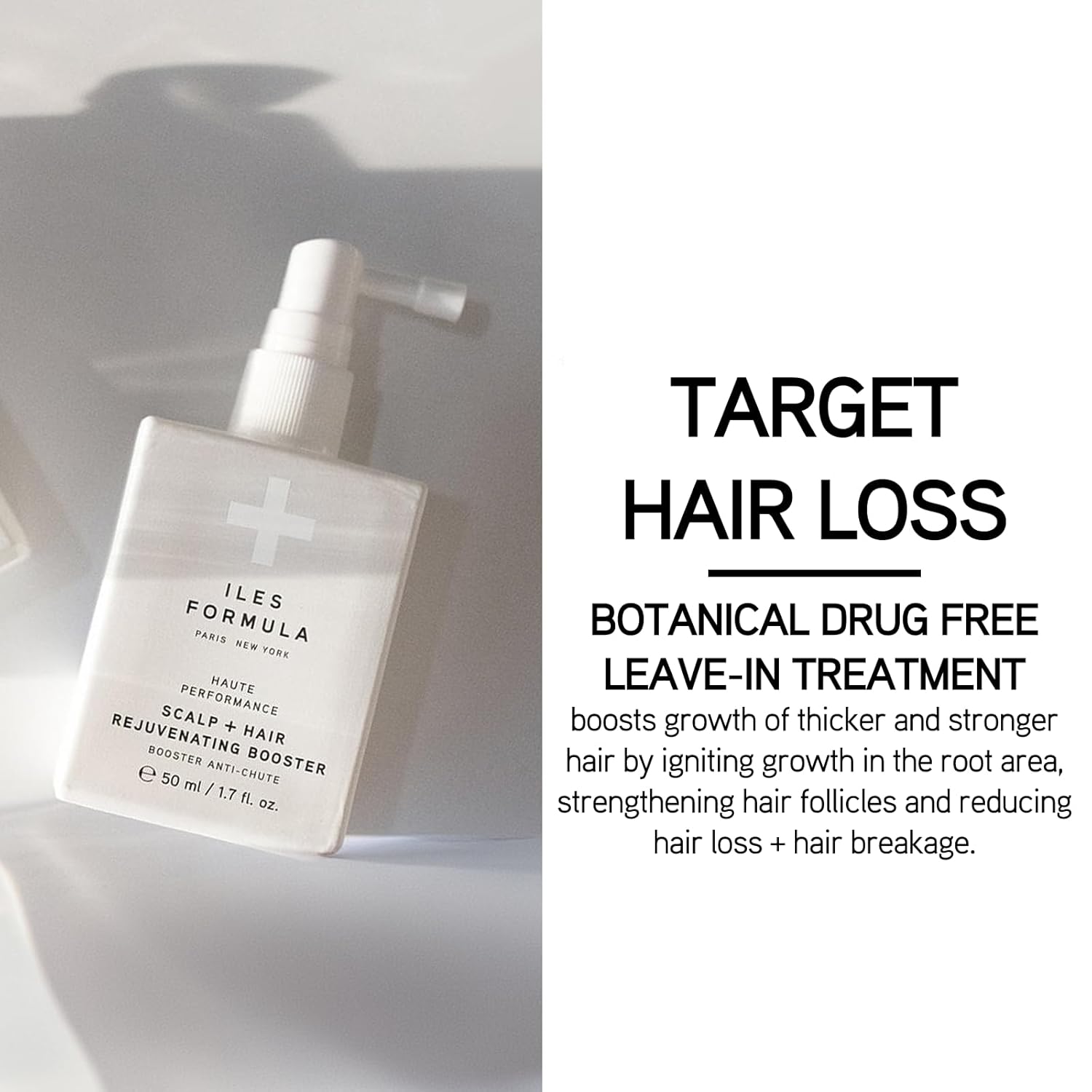 - HOW TO USE - Spray generously and evenly to the affected areas of the scalp every day and massage to activate circulation. Continue treatment daily for a minimum of 3 months. Use on wet or dry hair and avoid contact with eyes. For optimal results, use the Iles Formula Scalp + Hair Rejuvenating Boosterafter the Iles Formula Shampoo + Conditioner to allow the Booster to encourage necessary hair growth without hair breakage impeding the process.