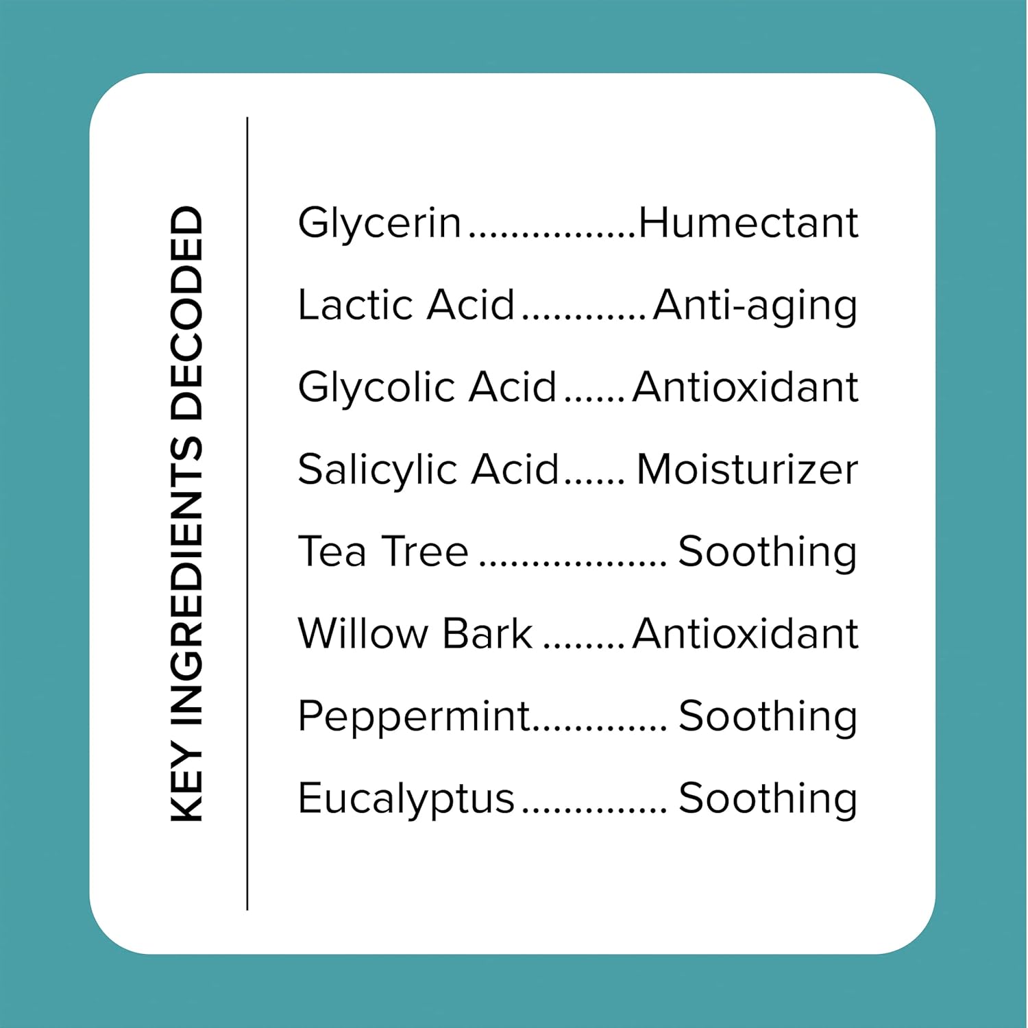 - EXFOLIATING FORMULA: To prevent dry skin from making things worse, we use an optimal blend of surfactants and humectants to give you a deep cleanse while preventing your skin from over drying. Formulated with an AHA blend including glycolic acid, lactic acid, salicylic acid, citric acid, our cleanser sloughs off dead skin cells leaving smoother more supple looking skin.