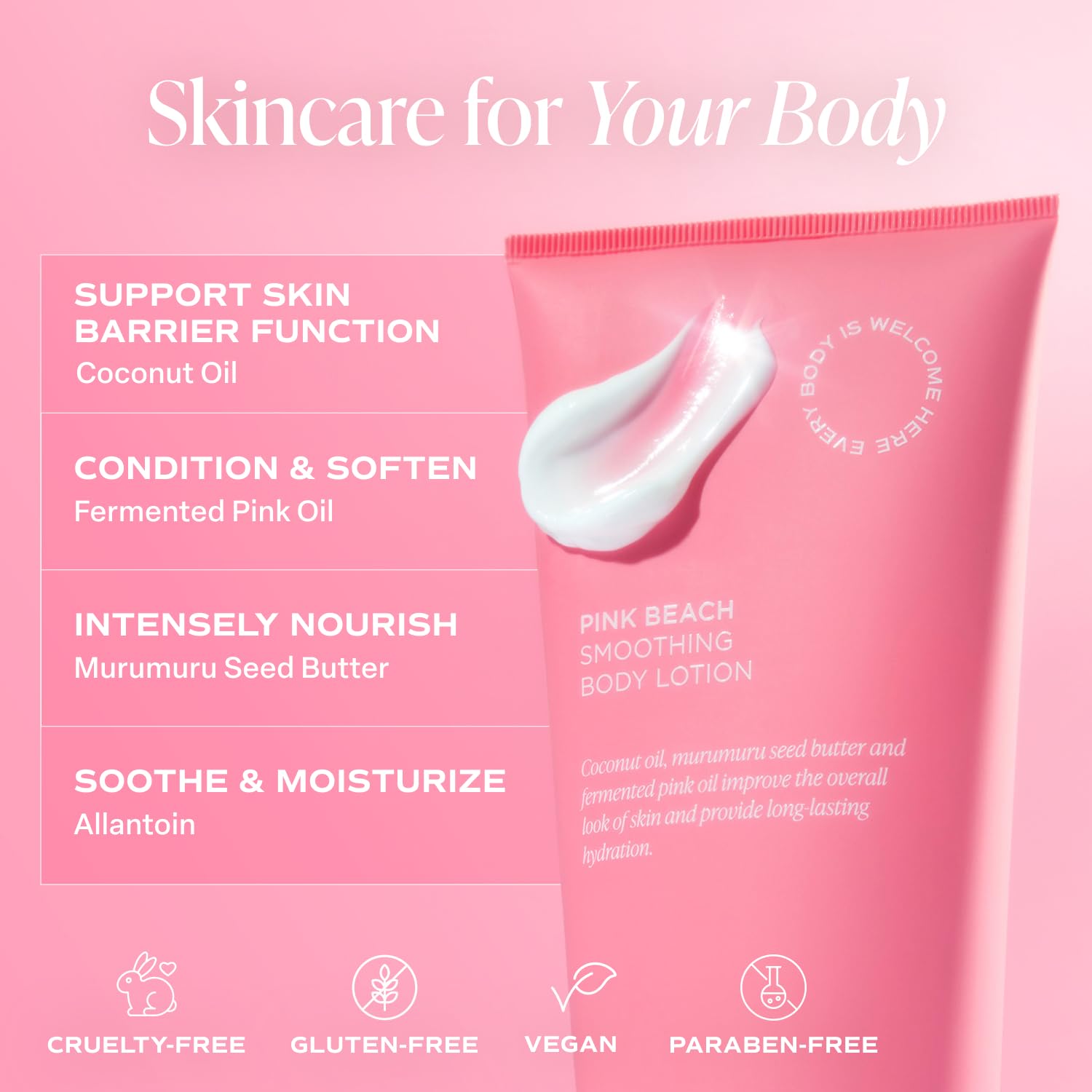 - SMOOTHING: Infused with coconut oil, murumuru seed butter, and fermented pink oil, this body cream moisturizes intensely, ensuring lasting hydration and supple skin for all.