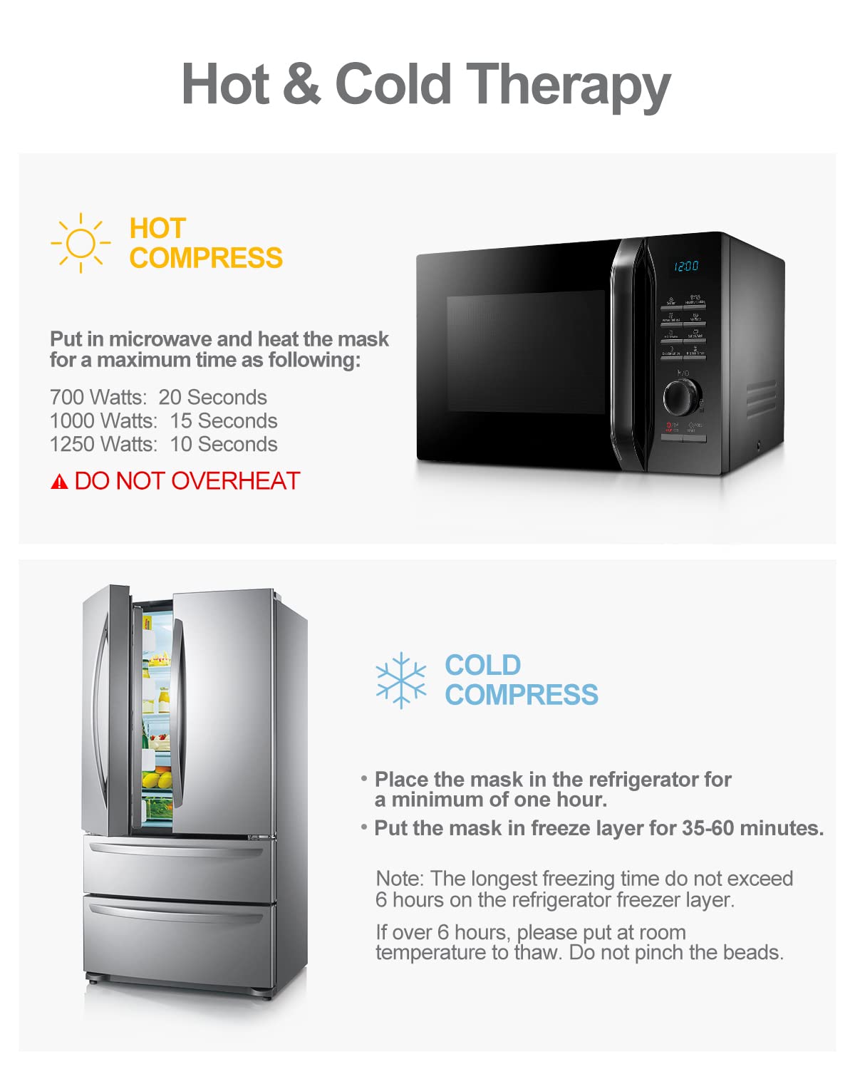 - ❤ Reusable & Reliable: The cold eye mask and 2 round ice packs are made with expert-grade gel beads, follow the instructions correctly, they can be reused for a long time. And long-lasting edge stitching for leak-proof, make you feel super comfortable and safe when in hot & cold therapy.