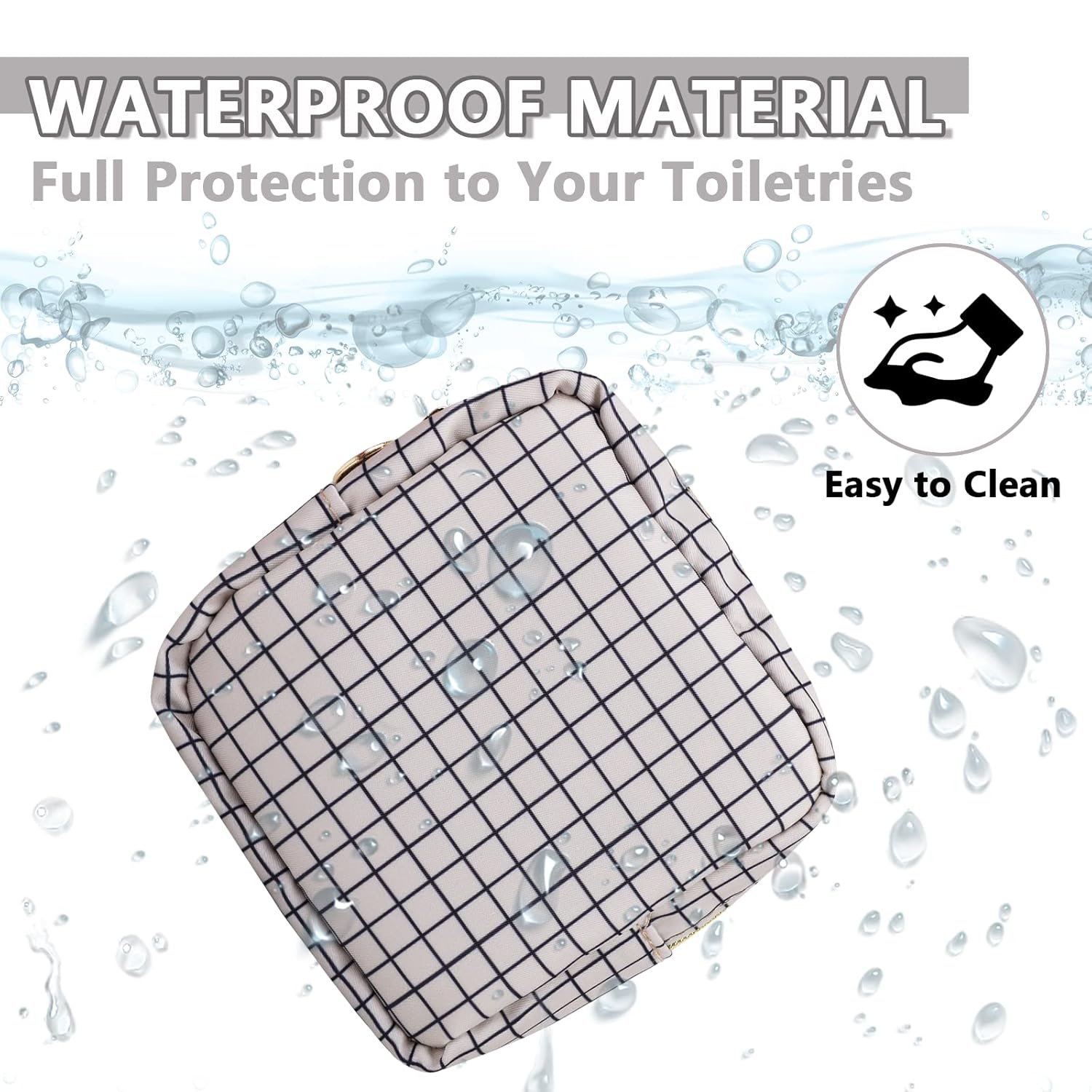 - 【High Quality Material】The cosmetic bag is constructed of lightweight and durable nylon fabric. It is waterproof and easy to clean, helping to protect your beauty, cosmetics and toiletries from water spillage accidents.It will not lose color after the wash.