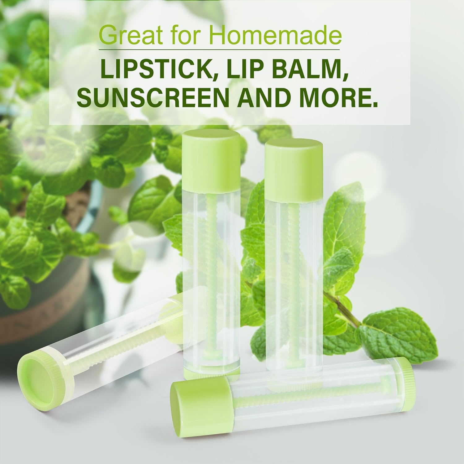 - 【WHAT YOU GET】60 clear empty lip balm tubes with green snap-on caps; Each tube is 5.5ml (3/16 oz), the perfect size for lip balm and lipstick; Compact size makes it an easy fit for pockets, purses and pouches