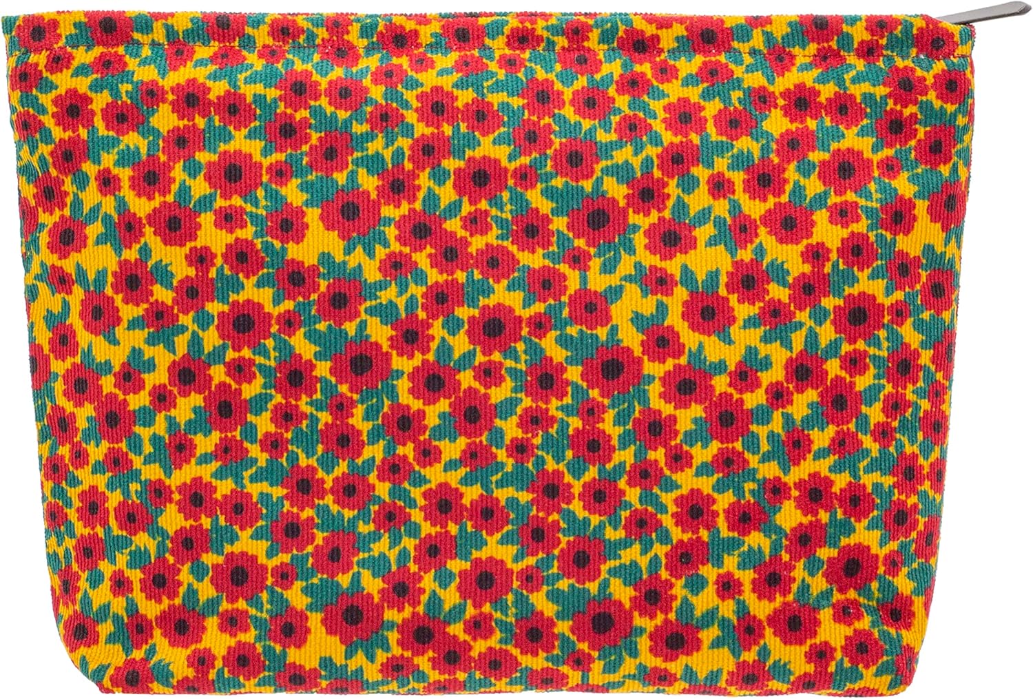 PAZIMIIK Makeup Bag Large Zipper Corduroy Make Up Pouch for Purse Travel Canvas Cosmetic Organizer for Women Brush Storage,Floral Red