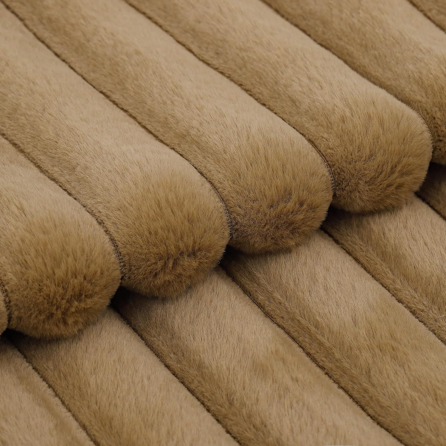 MADIZZ Set of 2 Faux Wool Plush Decorative Throw Pillow Covers 26x26 Inch Camel Fluffy Striped Soft Decorative Cushion Cover for Sofa Bedroom Pillow Shell