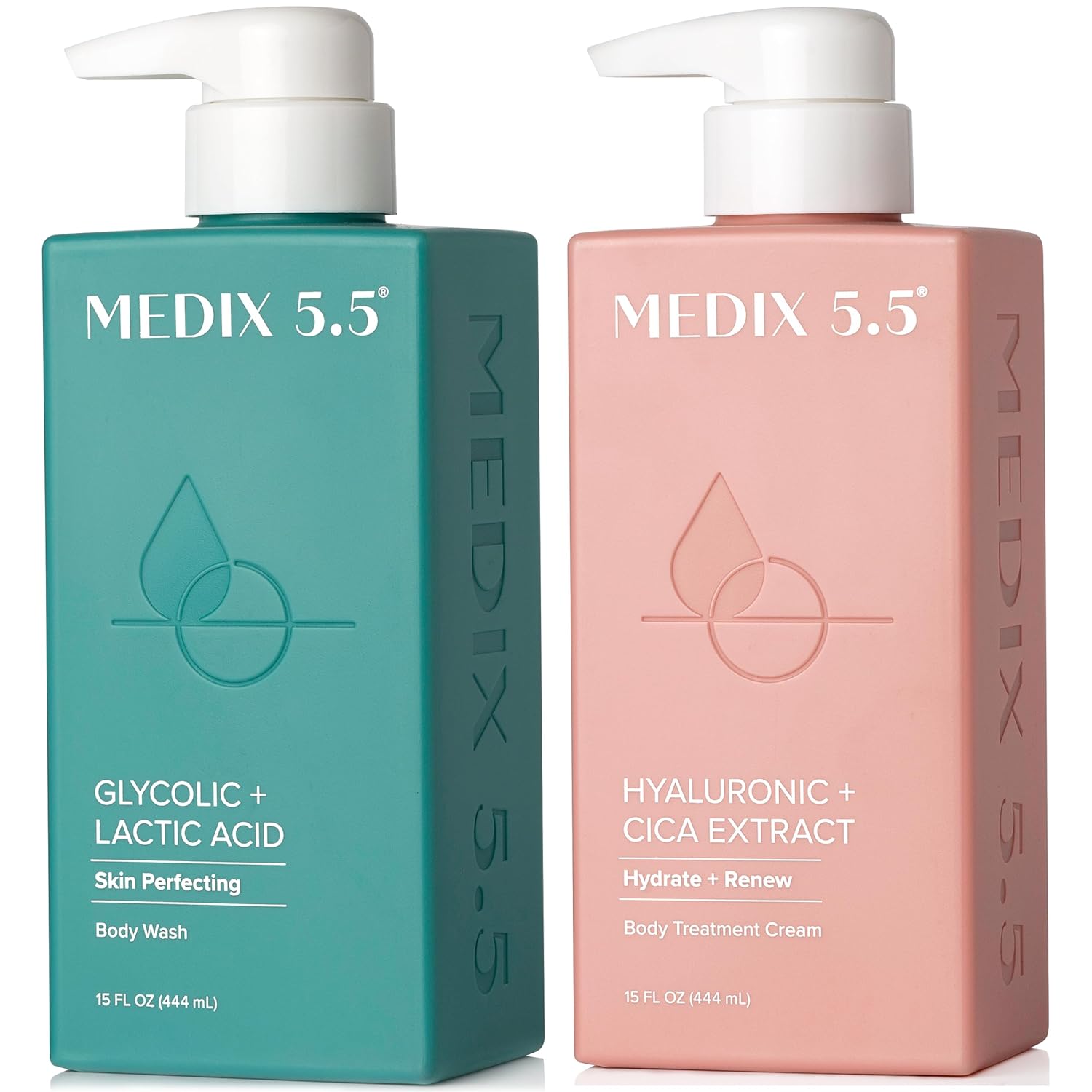 Medix 5.5 Exfoliating AHA Glycolic Acid Face & Body Scrub Cleanser + Hyaluronic Acid Moisturizing Body Cream Lotion Skin Care 2PC Set | Alpha Hydroxy Acid & Lactic Acid Foaming Body Wash & Face Wash