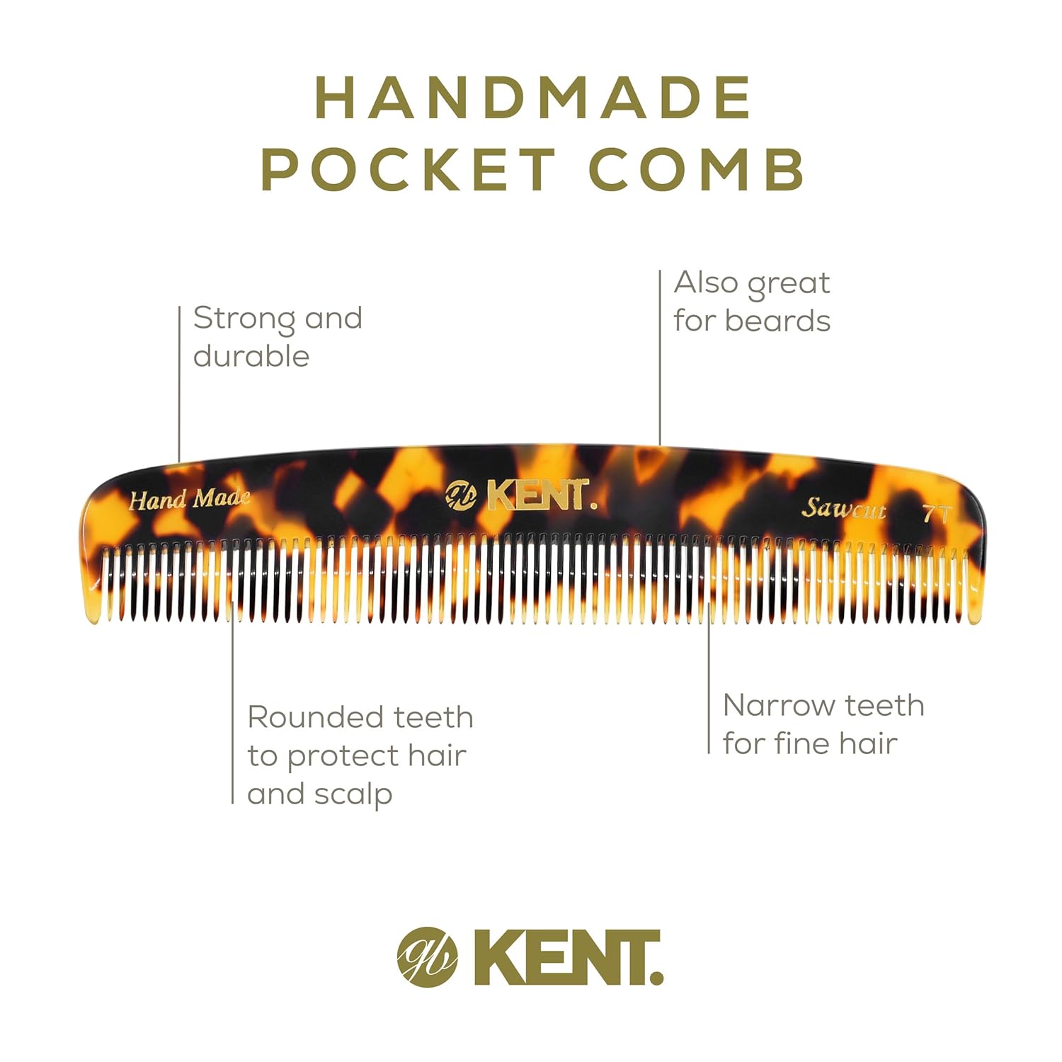 - GENTLE GLIDING COMB: The hand sawn combs are the nature of Kentβs Success. Cellulose acetate is a tactile, yet flexible and strong matrial. They glide effortlessly through hair without scratching or damaging the hair or scalp. Kent Combs have rounded teeth which ensure smooth and comfortable action.