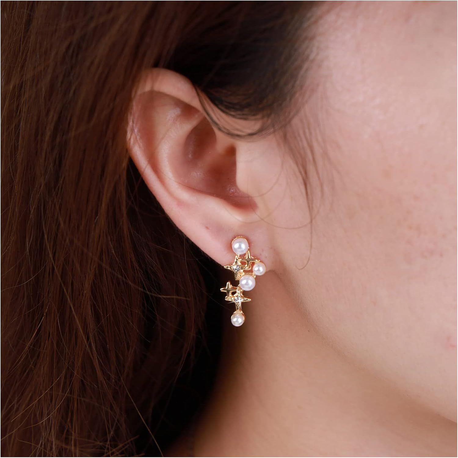 Vintage Pearl Star Earrings Rhinestone Pearl Drop Earrings Gold Crystal North Star Earrings Cz Northstar Studs Earrings Jewelry for Women