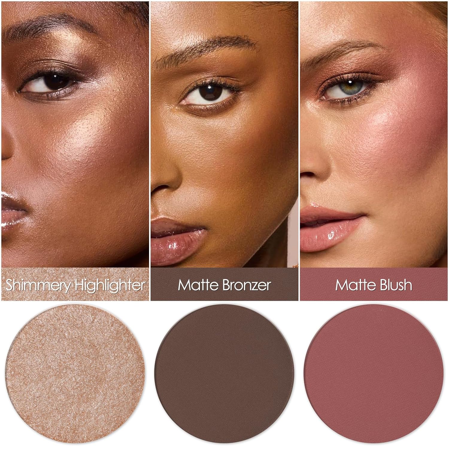 - 【3 in 1 MAKEUP PALETTE】 This multifunctional contour kit includes blush,highlighter and bronzer, with the texture of matte and shimmer, which can create different styles of makeup.