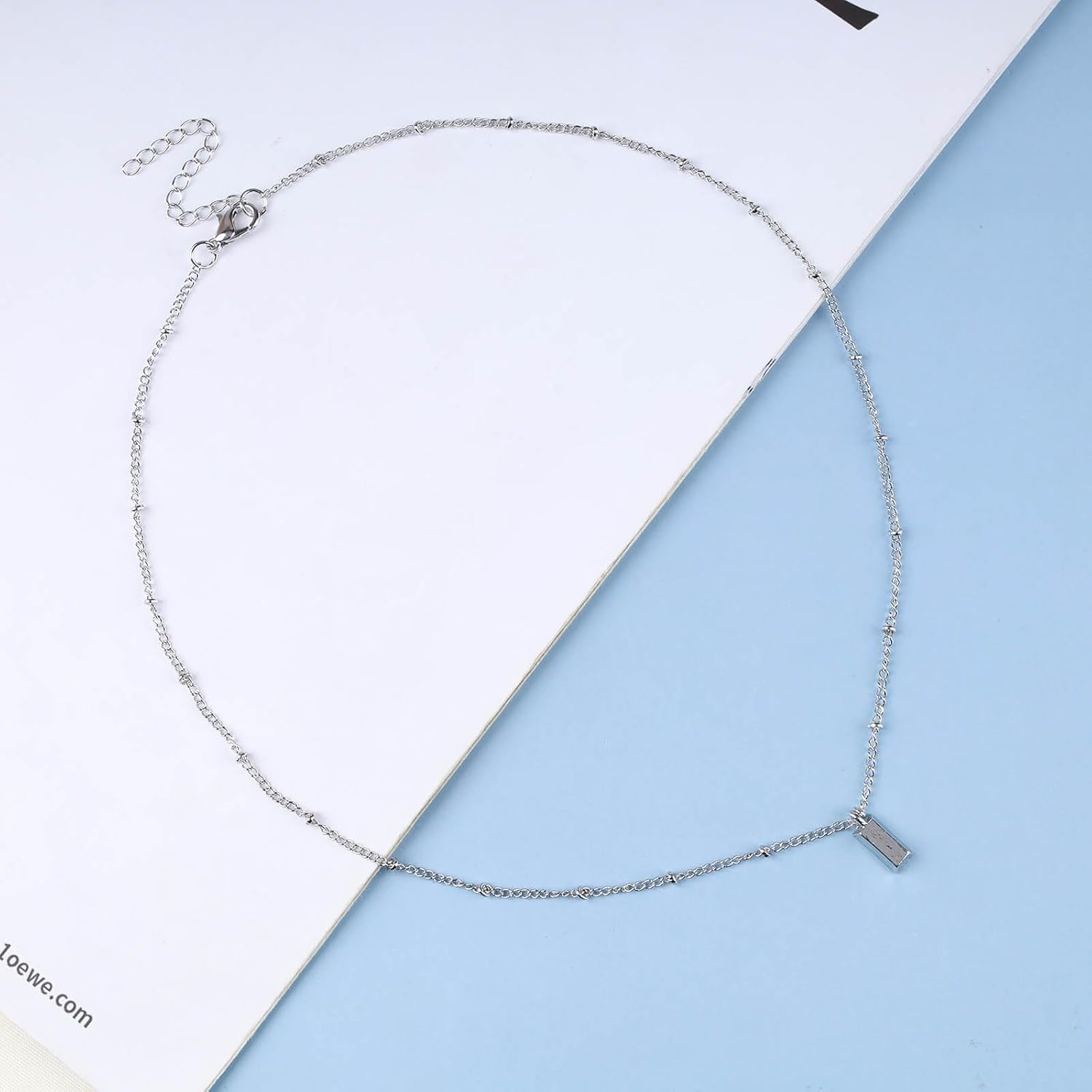 Vintage Square Pendant Necklace Polish Square Necklace Square Choker Necklace Gold Ball Chain Necklace Jewelry for Women (Gold)