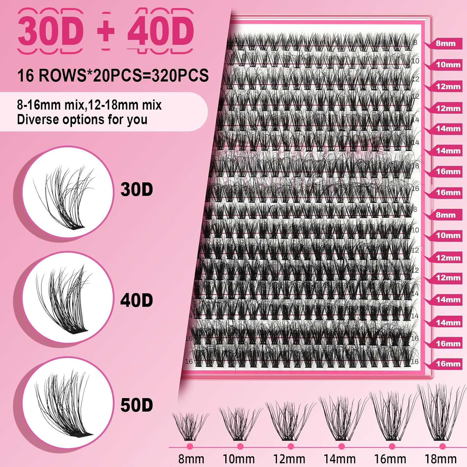 Lash CIusters 320Pcs Individual Lashes 3D Volume Cluster Lashes Natural Look Eyelash Clusters Faux Mink Wispy Lashes 30D+40D-C Mixed DIY Lash Extension (30D+40D-C,8-16mix)