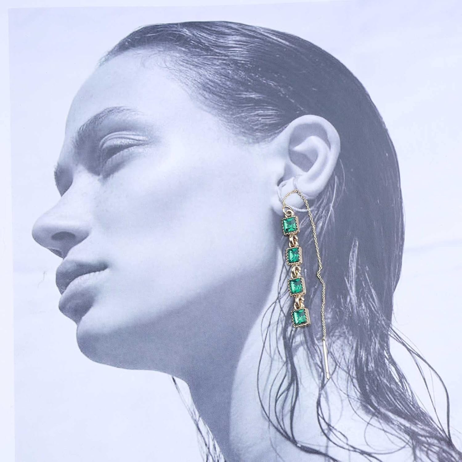 - Green emerald chain earrings.Gift Occasion:The Simple Elegance and Intricate Detailing,From Casual to High Chic.Suitable for any Occasion, Such as Beaches, Event Parties, Dance Parties, Dates, .Daily Collocations,Banquet,Weddings, etc.