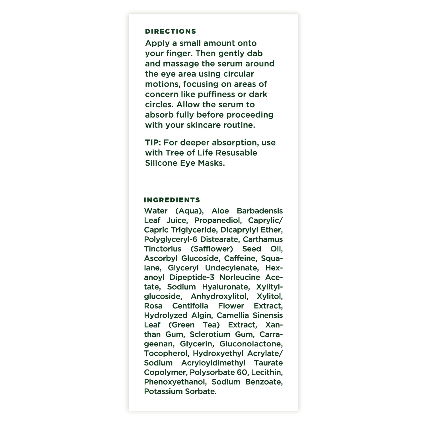 Tree of Life Caffeine Under Eye Serum - 1fl oz - Dermatologist Tested Dark Circles Treatment - Hydrating Anti-Aging Formula to Reduce Puffiness, Bags & Wrinkles - All Skin Types