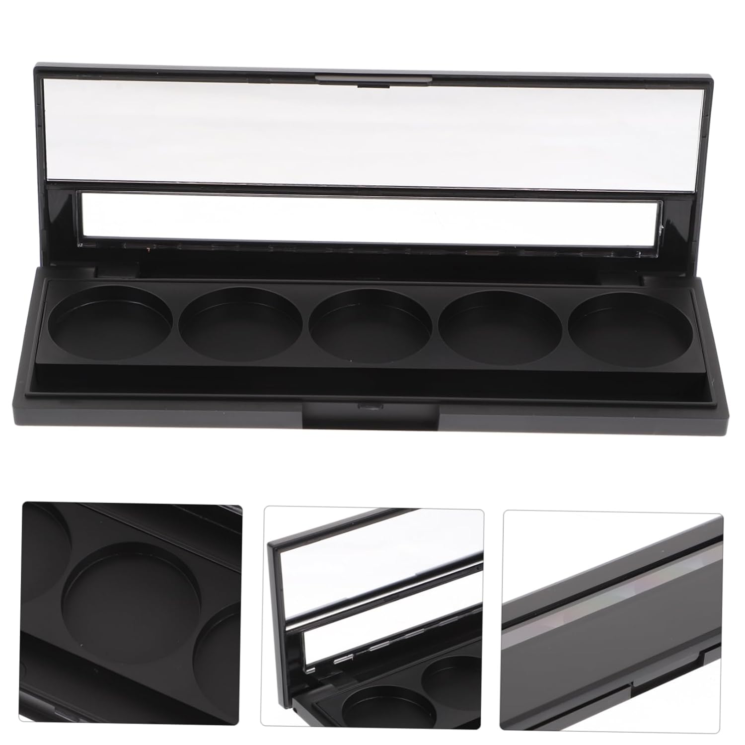- 5 pan eyeshadow-- lightweight empty palette with large capacity for practical use. it saves place by putting different makeups into a palette, thus making it portable and convenient