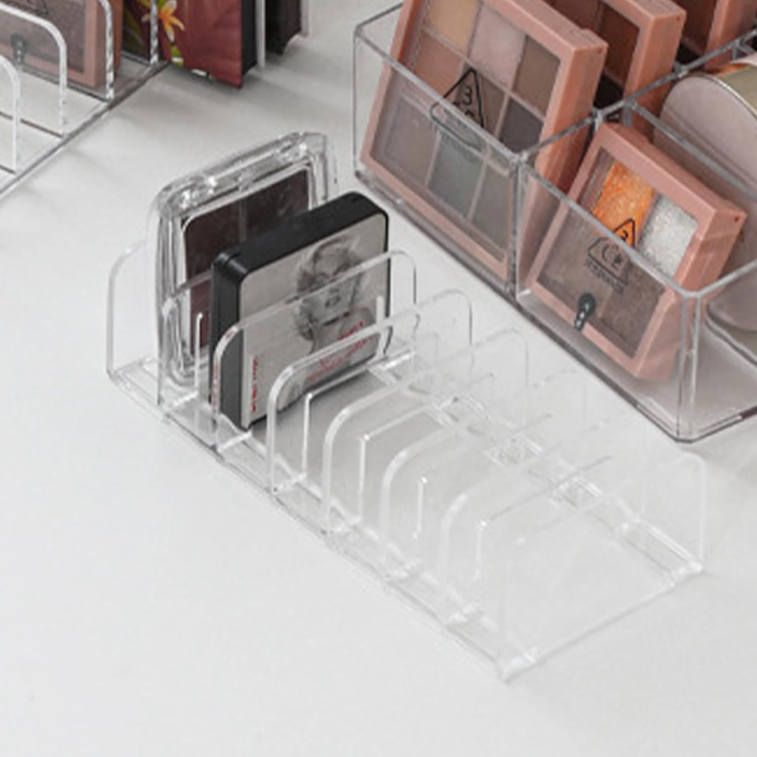 - ✮[MULTI-SCENE USE] : The simple and stylish shape of the compact makeup palette organizer is suitable to place in your drawer, bookshelf, countertop, bathroom, vanity, dressing room or anywhere you need it.