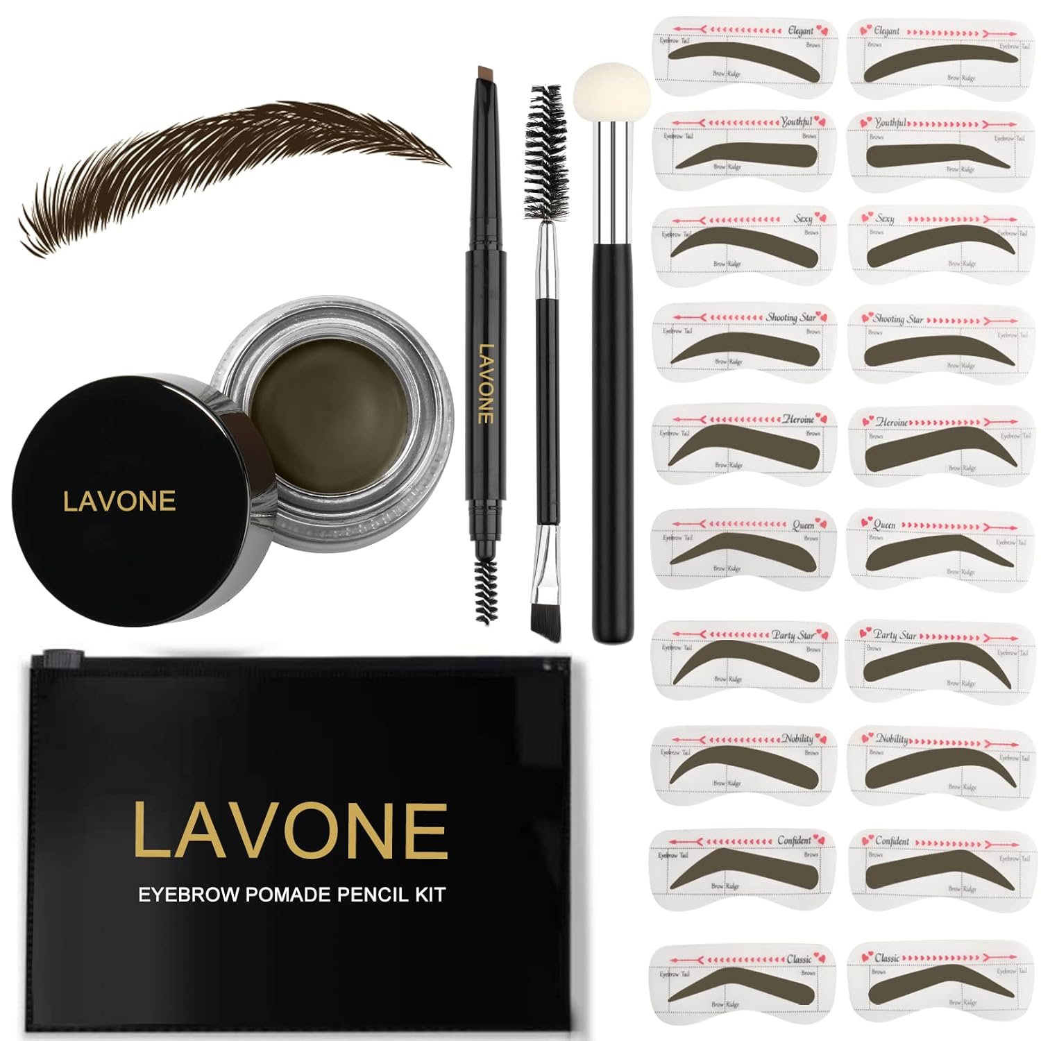• [Whatโ€™s in the eyebrow kit]: LAVONE makeup eyebrow kit includes brow pencil, eyebrow powder 20 eyebrow stencils (10 different shapes), a sponge applicator, a dual precision brush and a zipper pouch for on the go.