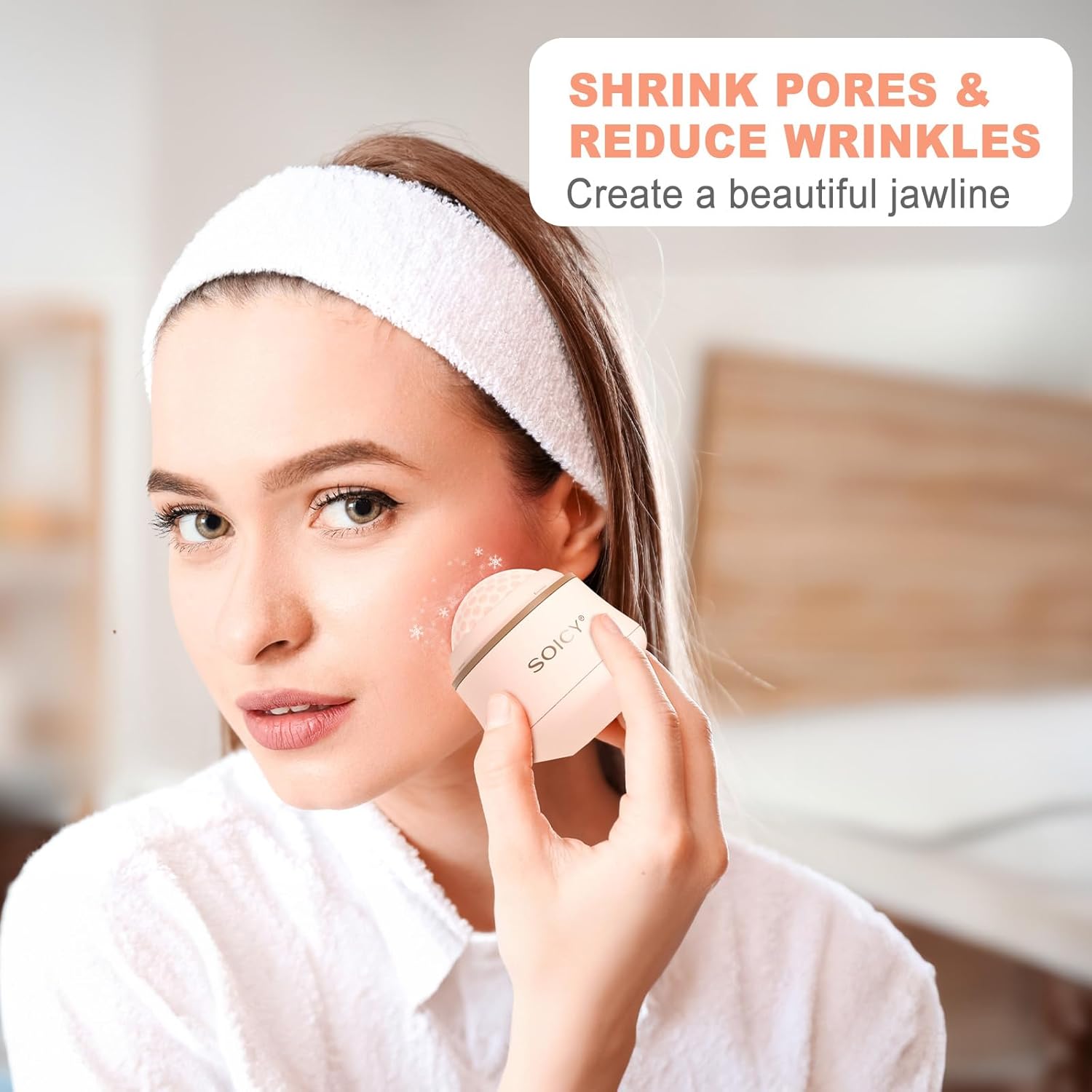 Leeshine Ice Roller Ball for Face and Eyes - Facial Skin Care Tools with a Large Roller and Carry Case Self Care Gift.Men Women (S50-Pink)