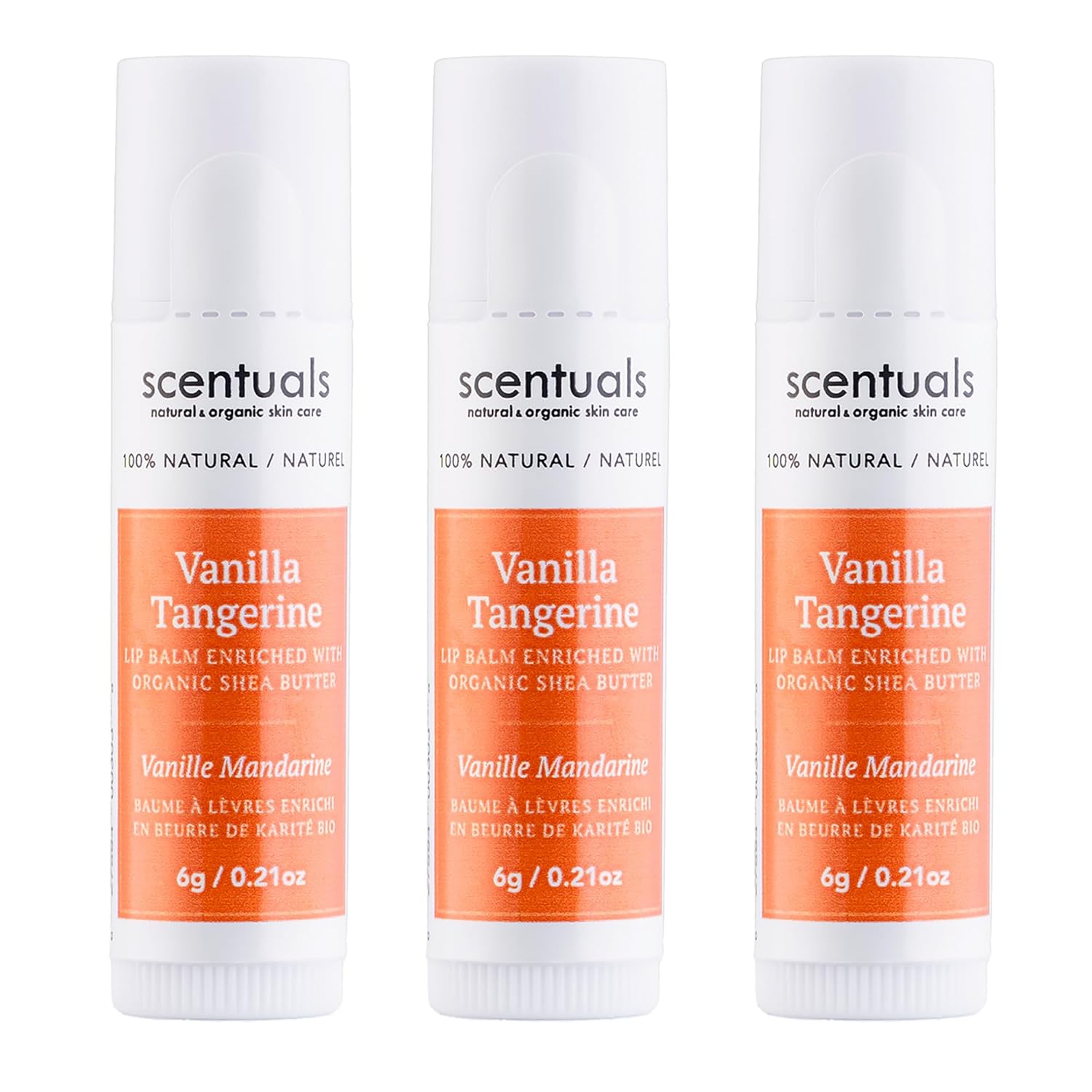 Lip Balm Vanilla Tangerine Set of 3, Made with Shea Butter, Cocoa Butter, Avocado & Jojoba oil, Beeswax, Vitamin E and Essential oil, Moisturizing Lip Care, Cruelty Free Hydration, Natural (3 Pack)