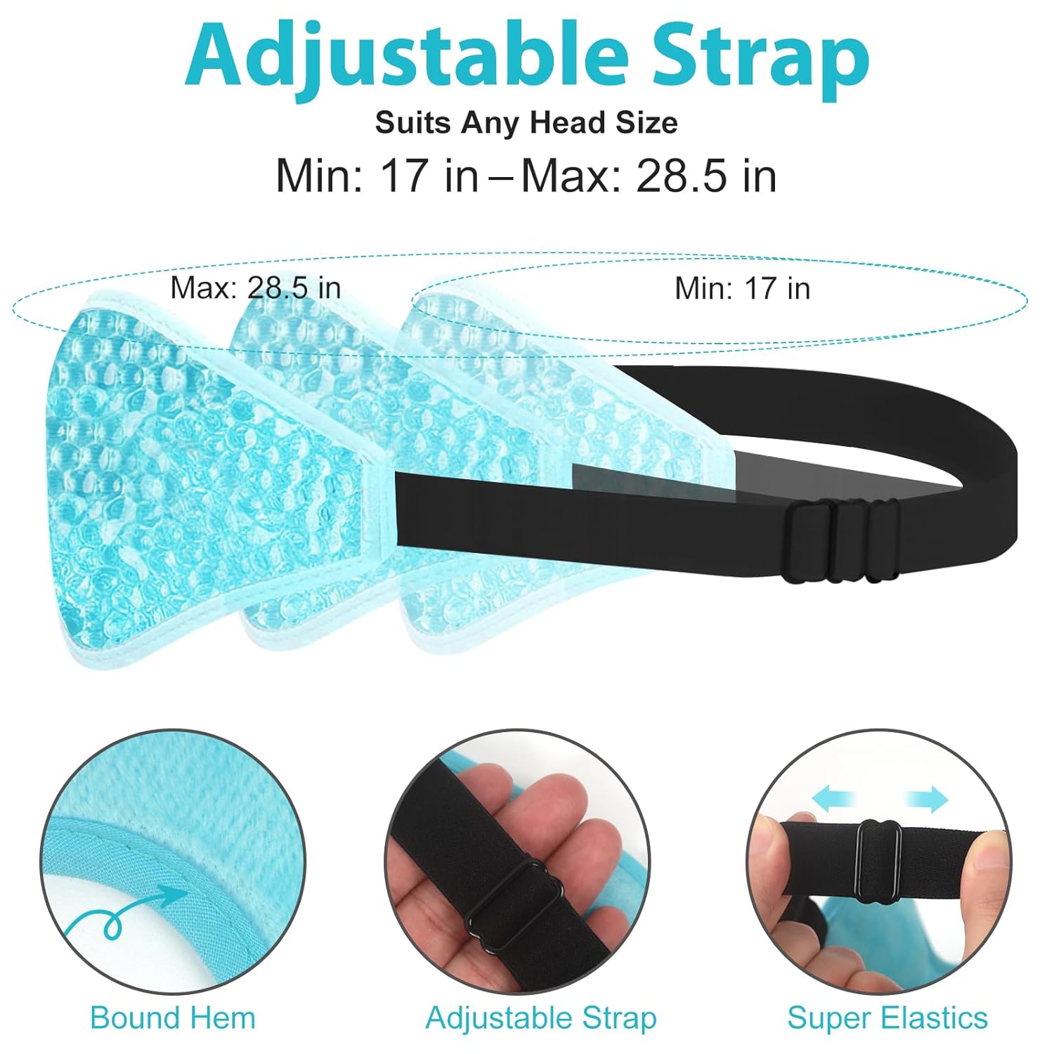 - 【Adjustable Soft Elastic Strap, Comfortable & Suits Any Head Size】BeeVines reusable gel cooling eye compress for puffiness & allergies features a soft, adjustable elastic head strap that does not move or fall off while you are using it. The elastic strap of this skin treatment mask is better as it never messes your hair and is durable. Our 2 pack frozen ice masks for puffy eyes & sinuses perfectly fit any head shape & size (9.4 in to 17.1 in) and suit both adults & kids.