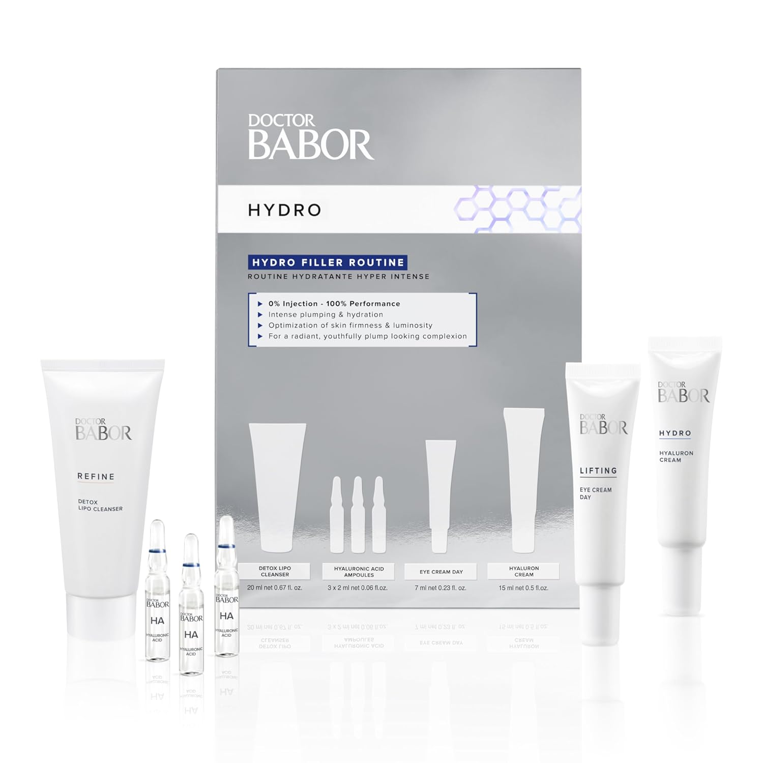 DOCTOR BABOR Hydro Filler Routine, Hyaluronic Acid Power Serum Ampoules, Lifting & Plumping Eye Cream, Target Wrinkles & Firmness, Radiant Results Skincare Set