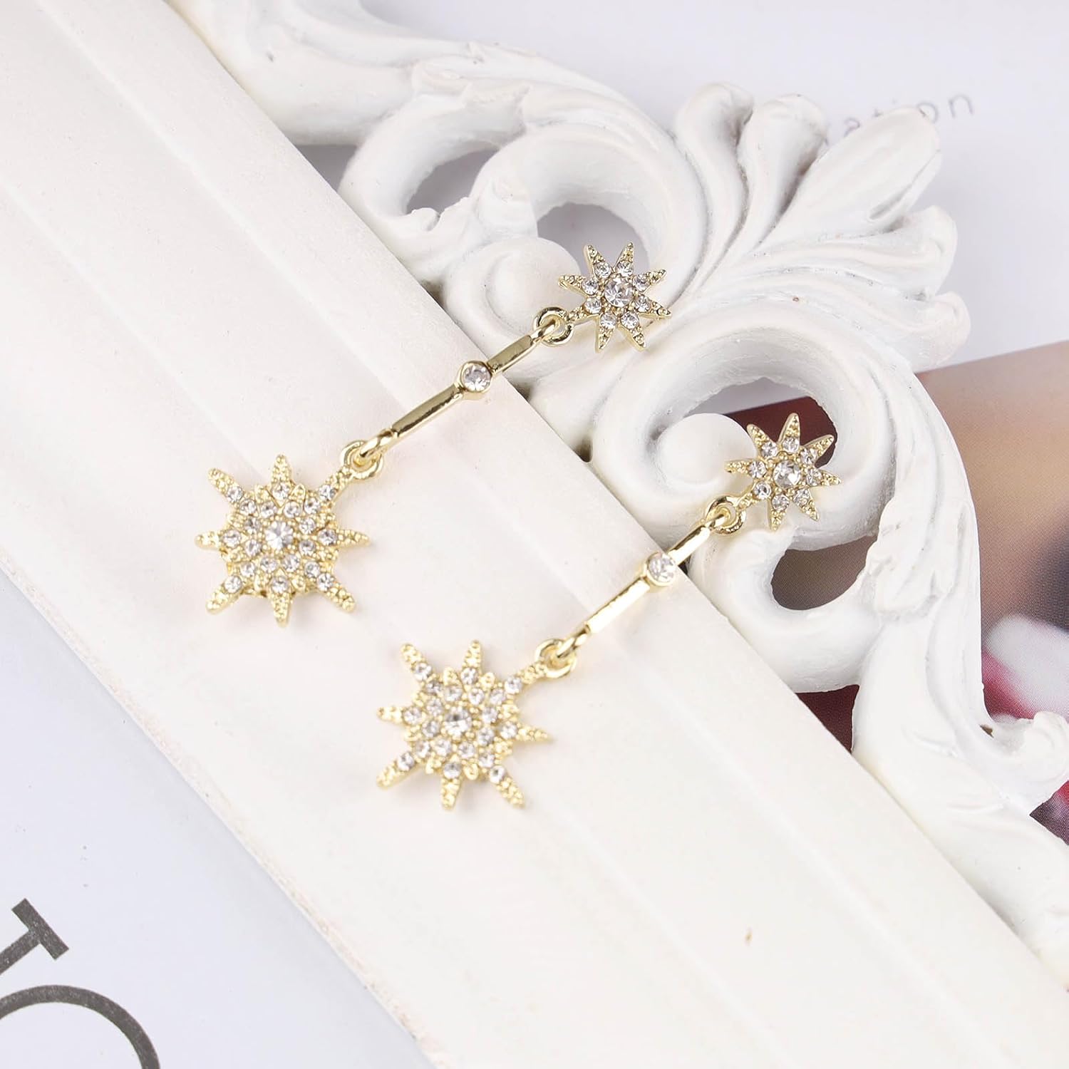 Vintage Crystal Starburst Drop Earrings Long Rhinestone Northstar Earrings Gold Cz Star Dangle Earrings Cz North Star Stud Earrings Jewelry for Women