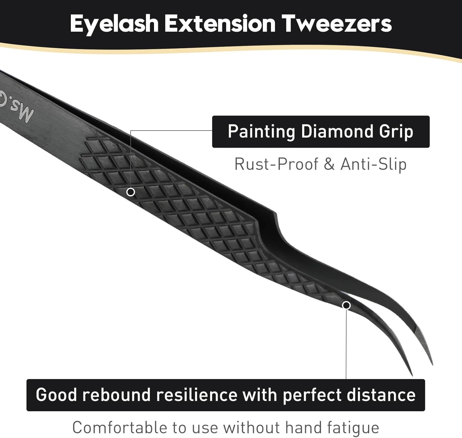 - ★RUST-RESISTANT& ANTI-STATIC: Crafted from 100% surgical-grade stainless steel,Ms.Queen tweezers are rust-resistant,anti-static and anti-magnetic,ensuring they won't interfere with the application process or cause damage to your clients' lashes.