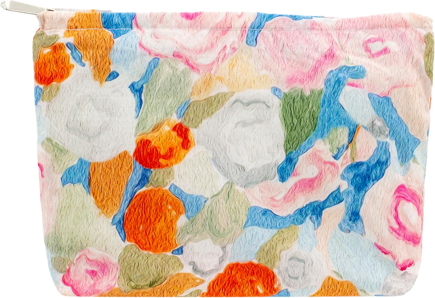PAZIMIIK Floral Makeup Bag Large Cotton Zipper Pouch for Purse Travel Canvas Make Up Organizer for Women Cosmetic,Garden Orange