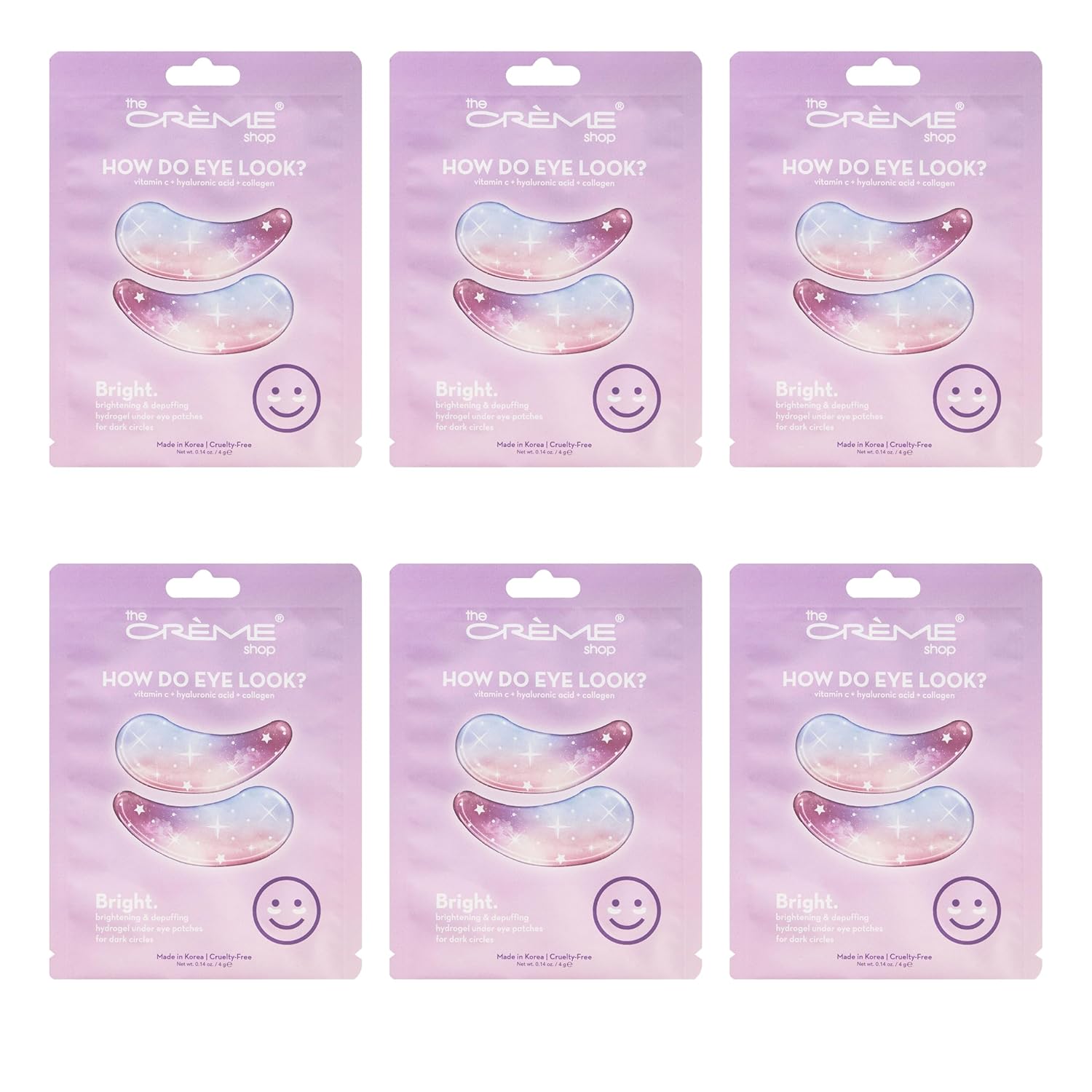 The Crème Shop How Do Eye Look? Vegan Illuminating Under Eye Patches for Brightening Depuffing with Vitamin C Hyaluronic Acid & Vegan Collagen 15 Min Quick Fix for Dark Circles Wrinkles (Set of 6Pack)