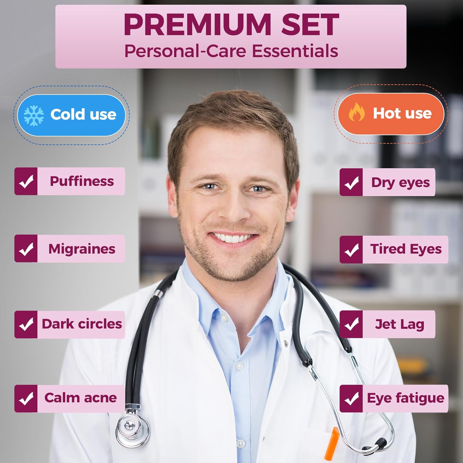 - โ๐ฅโใ6-in-1 ๐๐๐ฎ๐ฌ๐๐๐ฅ๐ ๐๐๐ฅ ๐ ๐๐๐ ๐๐ฒ๐ ๐๐๐ฌ๐ค SetใIncludes 1 x Ice Face Mask, 1 x Cooling Eye Mask, 1 x Cold Visible Eye Mask, 2 x Gel Under Eye Patches , 1 x Ice Pack, 1 x Storage Carry Bag. Cooling facial mask is widely used for home relax, office and travel . Unleashed yourself from the tension of the day, work pressure, business trip or jet lag, refresh your dizzy life. Sleep mask helps promoting sleep quality, you will feel relaxed and comfortable over the night till morning.