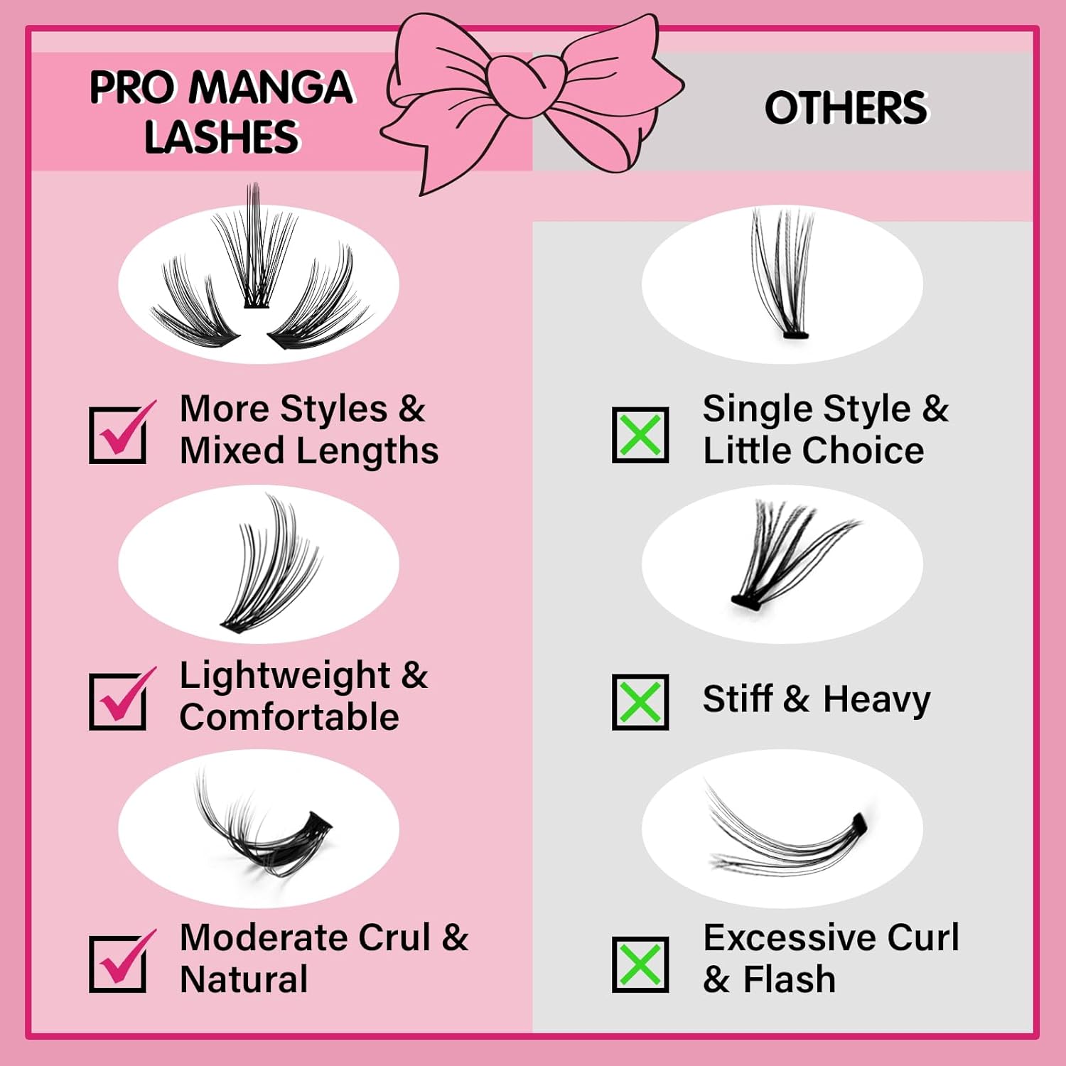 280 Pcs Individual Lashes 50D Mixed Lash Clusters Devil Style Lashes That Look Like Eyelash Extensions Wispy Lashes DIY Individual Lashes At Home (50D-D-8-16mix,Manga)
