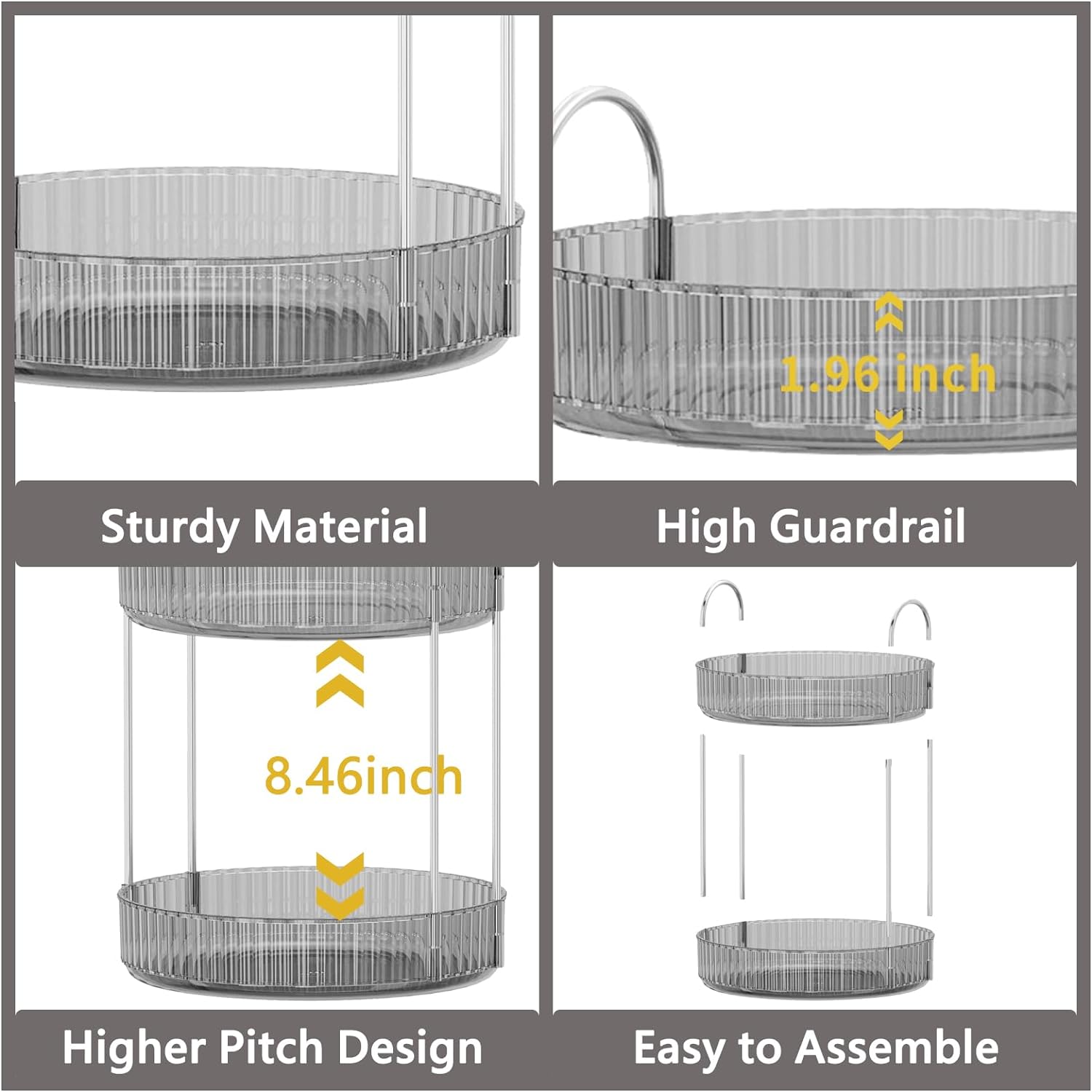 - RAISED GUARDRAIL & HIGHER PITCH DESIGN - The makeup organization features raised guardrails that can effectively prevents items on organization from dropping.Plus, the ample space between the two tiers ensures that even your taller bottles and jars can be easily accommodated without any hassle.