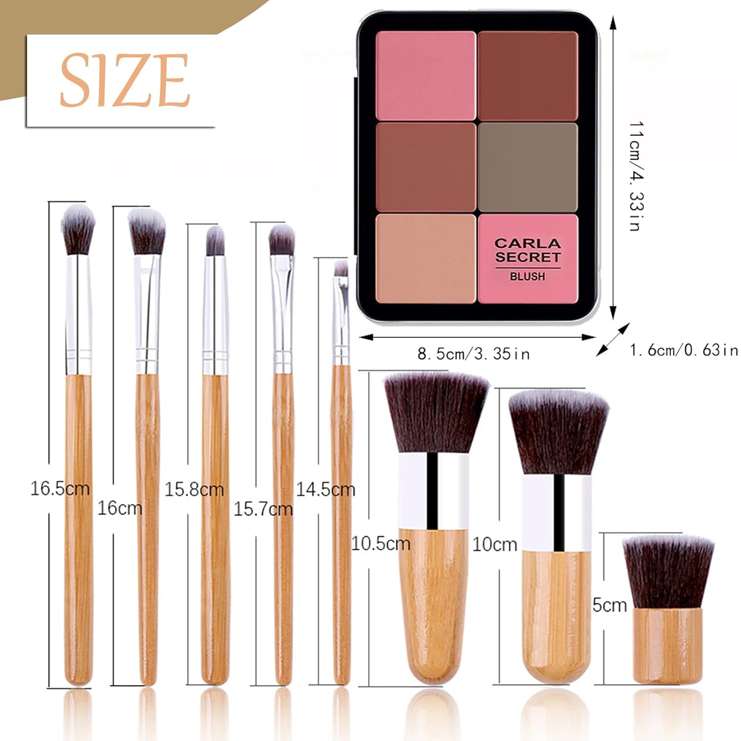 6 Colors Cream Blush Palette + 6 Colors Concealer Cream Contour Palette, Carla Secret Makeup Palette, Foundation Palette with 11 Pcs Makeup Brush Set, Long Wearing Blendable Full Coverage