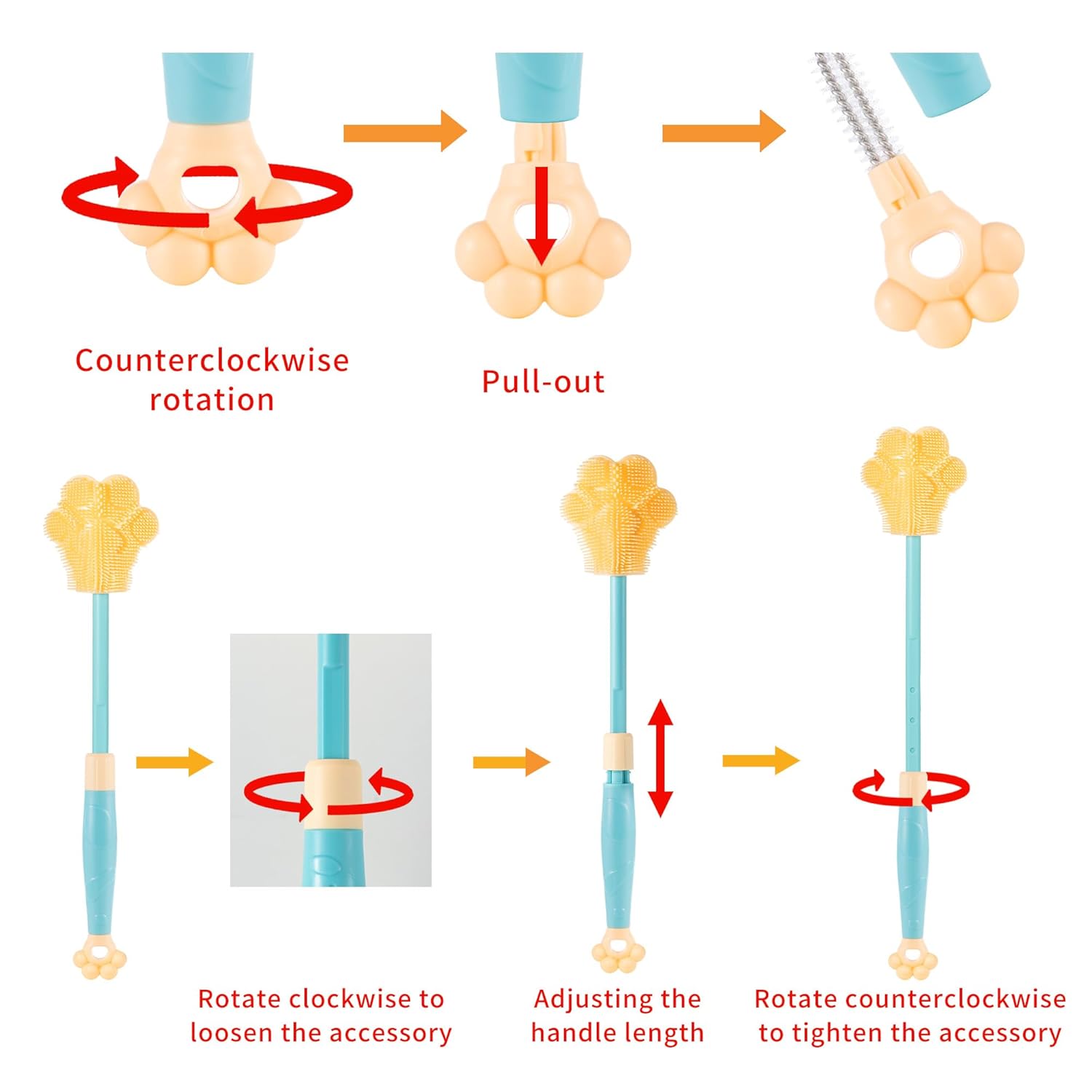 - This product has 3 parts. 1 Pawprint silicone brush and 1 silicone Nipple/Pacifier brush that can adjust the extension length according to needs. Besides, with 1 multifunctional Tiny Cup Lid Gap Cleaning Brushes.