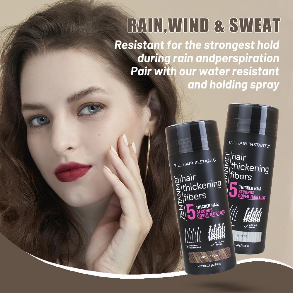 - Hair Growth Fiber Weatherproof:Weatherproof and long-lasting all day long, Hair Growth Fiber Powder contains microfibers with static electricity that seamlessly attach to your hair without causing skin irritation and resisting sweat, wind and rain