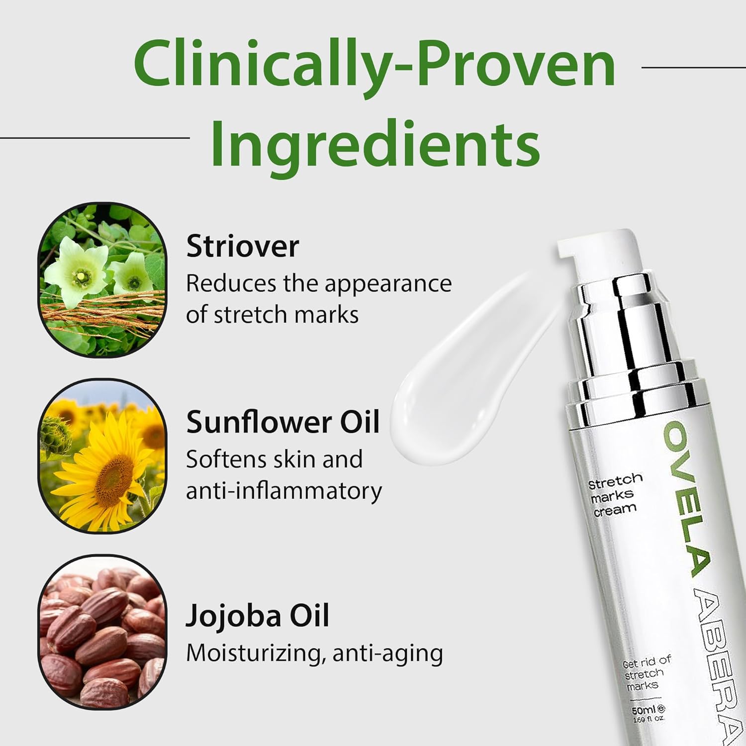 Abera Ovela Maternity Stretch Mark Cream with Eye Mask for Pregnancy and Weight Fluctuations, Stretch Mark Treatment Pregnancy Must Haves, Deep Stretch Mark Removal, All Skin Types, 1.69 fl oz