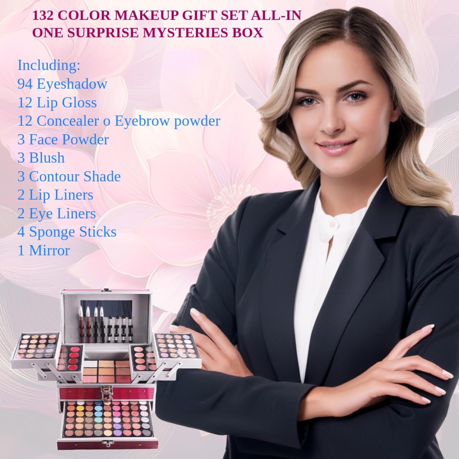 132 Colors All In One Ultimate Color Makeup Kit: Carry All Trunk with Cosmetic Contouring Palette, Concealer, Face Powder, Lip Gloss, Blusher, Contour Shade, Eye Liner, and Eyebrow Powder.