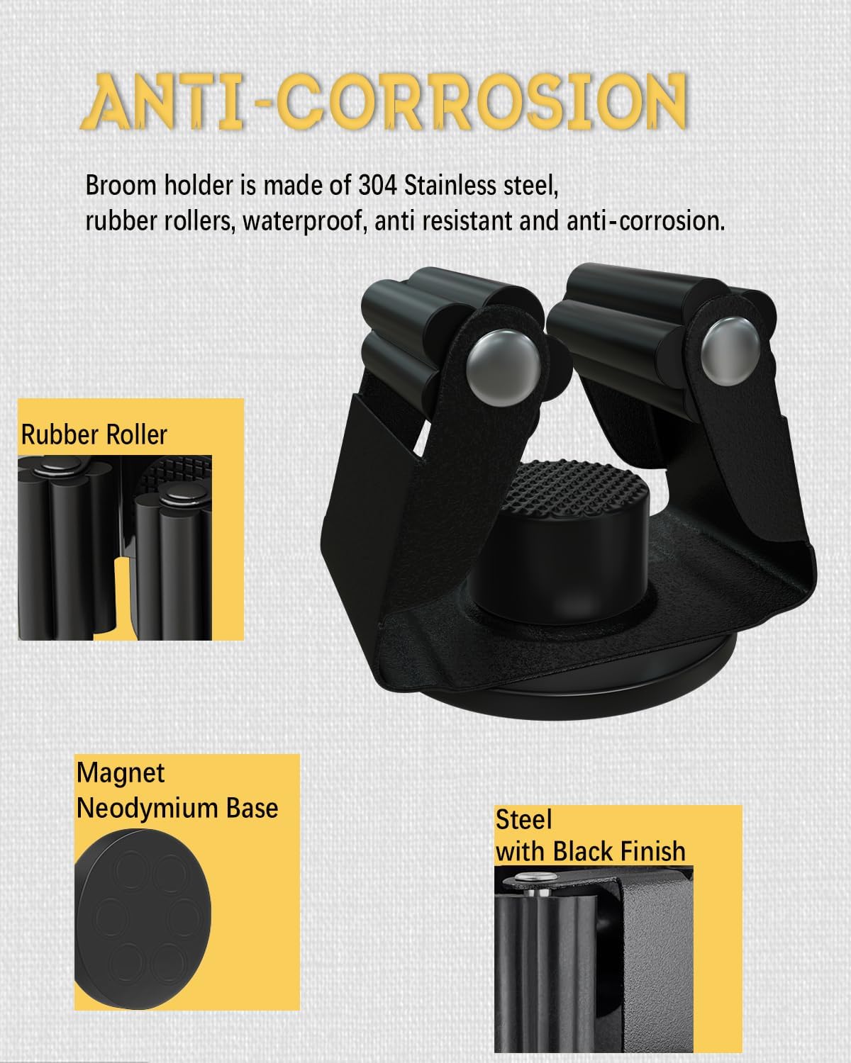 - Anti slip rollers: magnetic mop broom holder with silicone rollers; anti dislodgement and easy to clamp; solid and non slip