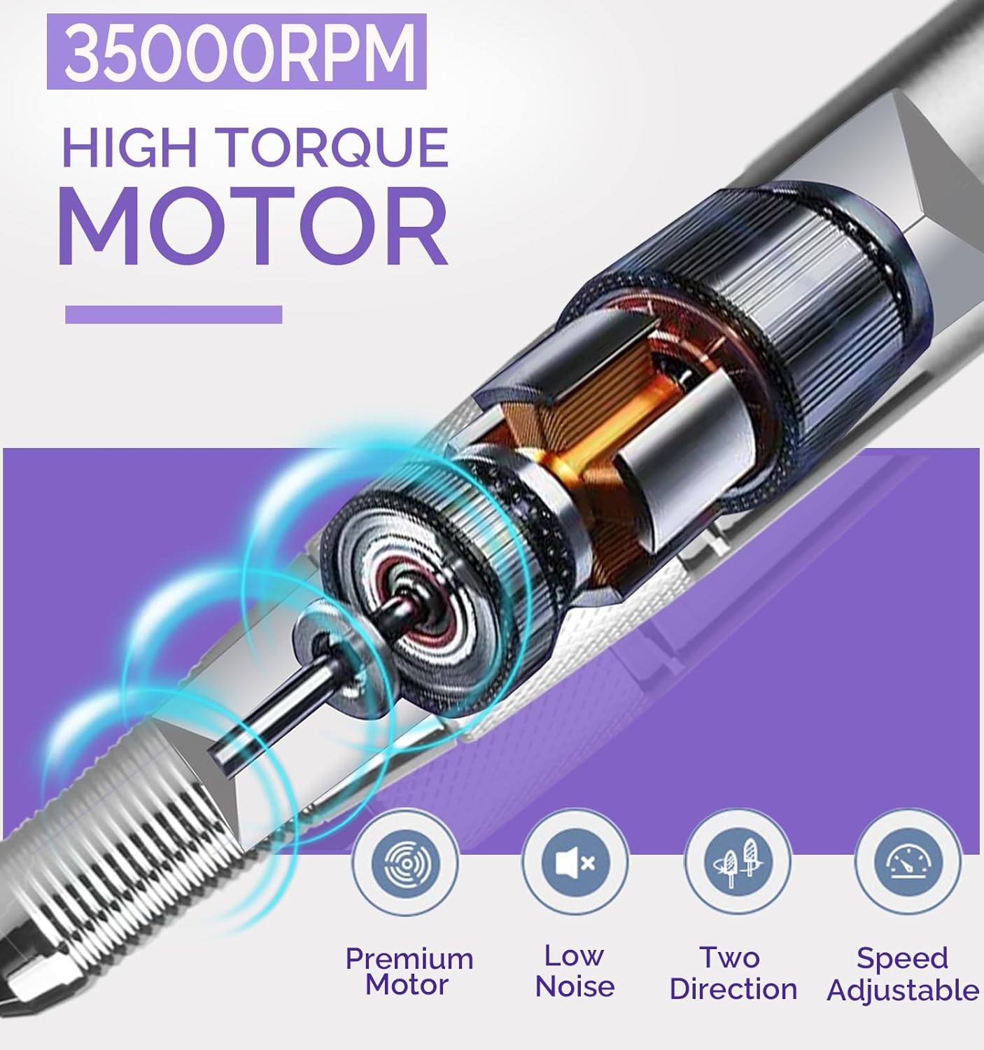 - 【Salon-Grade Power & Precision】 35000 RPM adjustable speed (via easy-turn rotary dial) makes this professional nail drill perfect for acrylic/gel removal, cuticle trimming, callus smoothing, and even intricate nail art. Vibration-free motor ensures steady control—whether you’re a beginner practicing at home or a pro handling back-to-back salon clients.